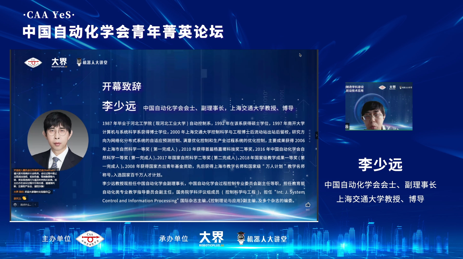5月28日,CAA云讲座“空间机器人”在线论坛成功举办,本期云讲座由中国科学院沈阳自动化研究所和《机器人》编辑部共同组织7位专家各抒己见,通过腾讯会议、CAA会议小程序、CAA官方视频号、蔻享平台、知乎及科技工作者之家等平台进行全程直播,播放量超4万人次。