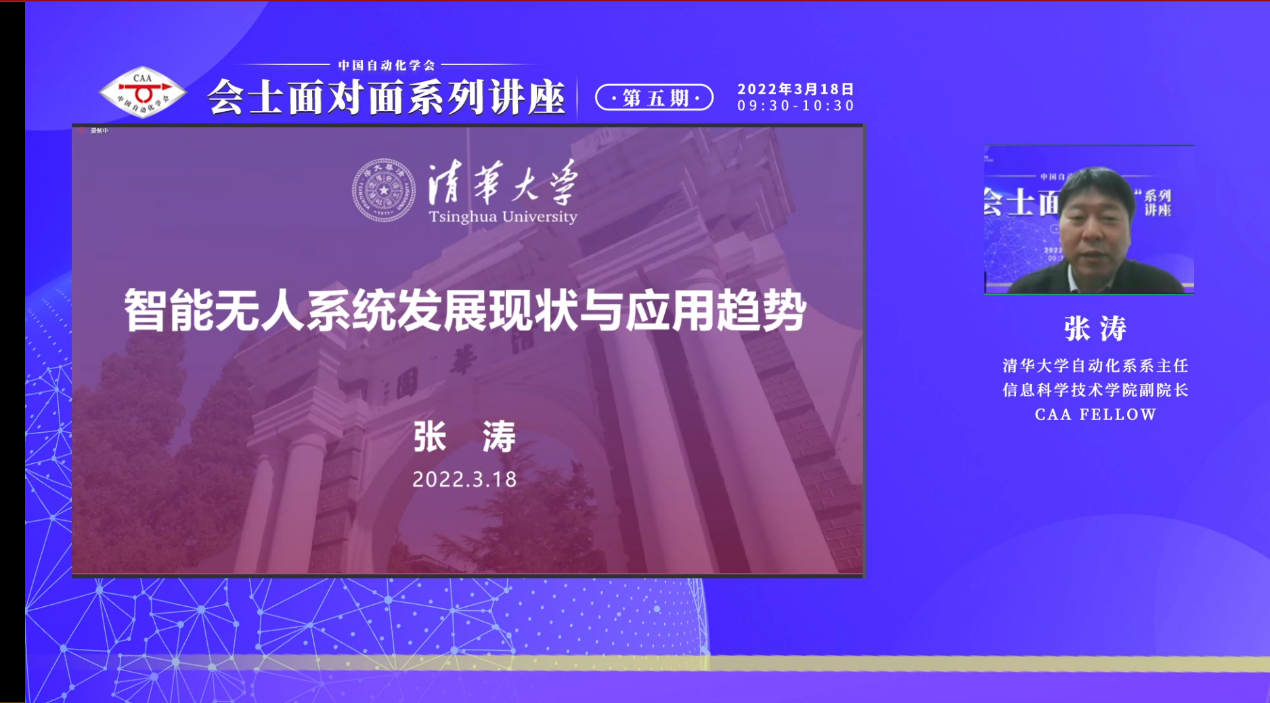 第五期会士面对面讲座于2022年3月18日上午成功召开,欧冠联赛官网会士、清华大学自动化系系主任,信息科学技术学院副院长张涛教授带来题为“智能无人系统发展现状与应用趋势”的报告。