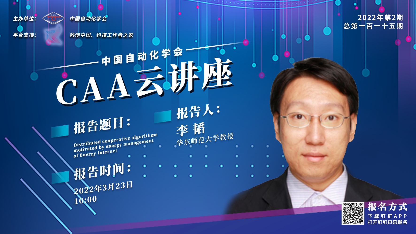 2022年3月23日华东师范大学李韬教授做客“CAA云讲座”并作题为“面向能源互联网能量管理的分布式协同算法”的报告。华东师范大学李韬教授从随机分布式协同计算与估计算法、随机动态网络的协同能力以及基于多智能体的分布式经济调度三部分详细介绍了团队的研究背景、研究方向以及研究内容。我国是目前全球最大的能源消耗国和油气进口国,解决能源“卡脖子”问题是我国发展的重中之重。发展分布式可再生能源是破解能源安全