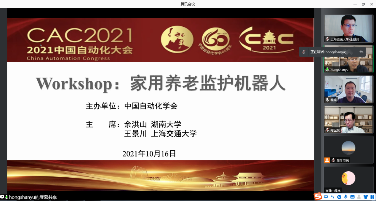 2021年10月16日,2021中国自动化大会Workshop家用养老监护机器人采用线上腾讯会议的方式成功召开。