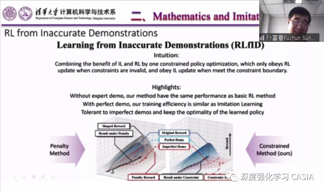 2021年1月23日,第五届深度强化学习理论与应用研讨会顺利举行。上午在中科院自动化所分组讨论交流了深度强化学习(DRL)与游戏,DRL与驾驶,DRL与机器人和自动机器学习。下午,邀请了几位报告人在Zoom会议室/Bilibili在线直播,分别从深度强化学习及相关的模仿学习、小样本学习、经验回放机制、智能驾驶应用,统计前向规划、联邦学习等不同角度进行了深入浅出的精彩分享。线上直播最高峰有1.2万人