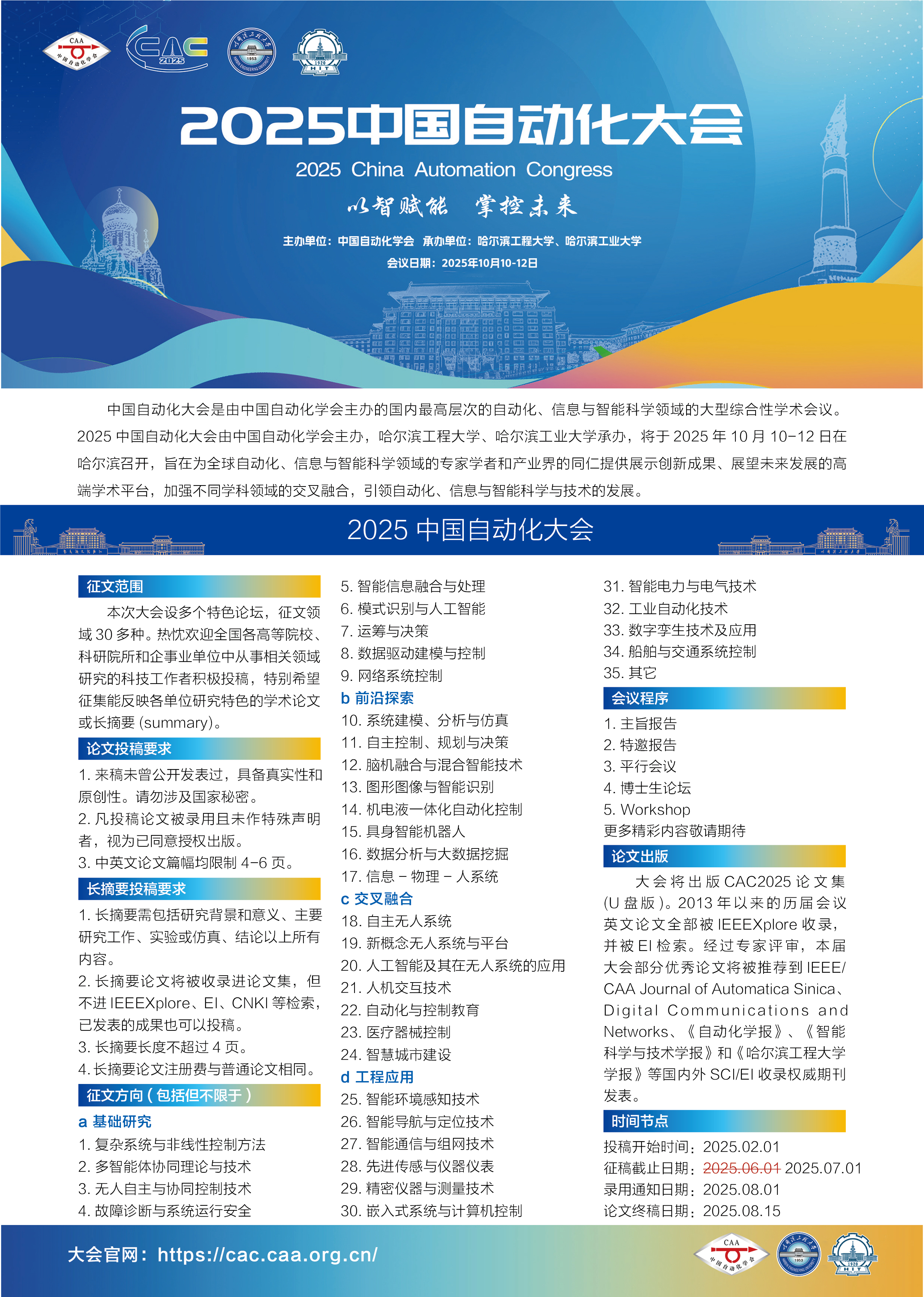 2025中国自动化大会征稿延期至7月1日,快来投稿吧!