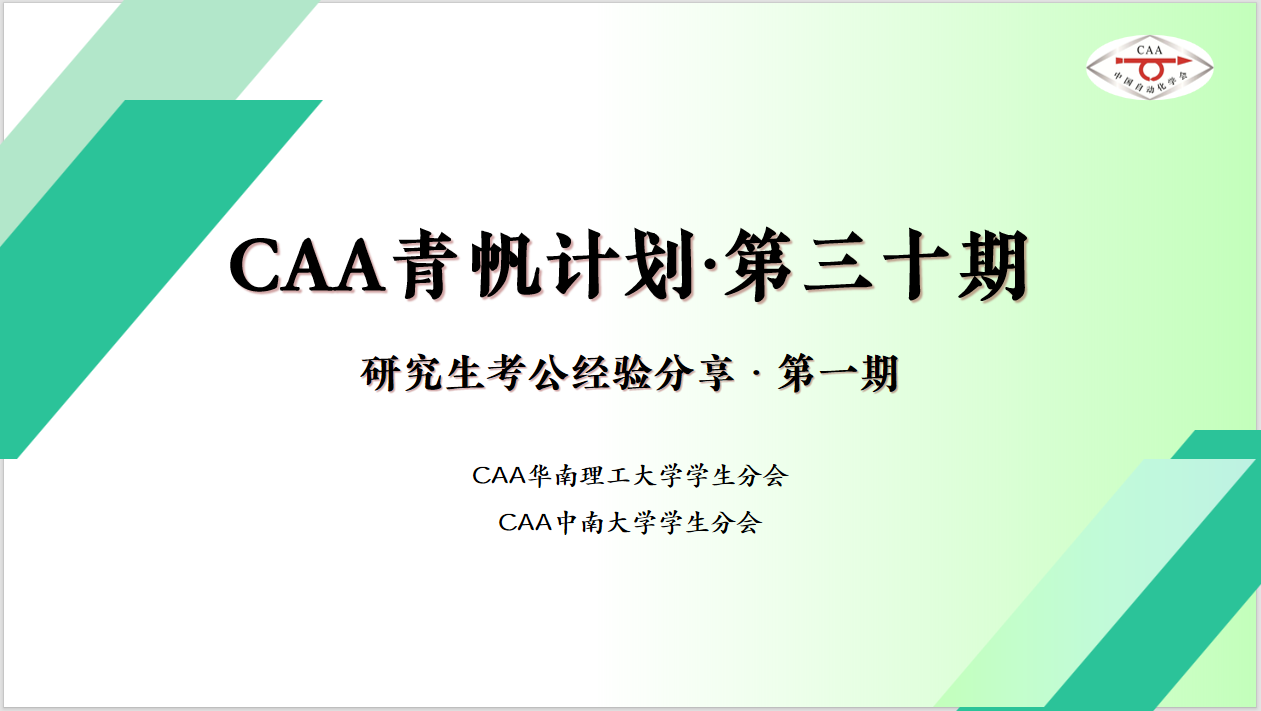 为助力各位正在备战考研的高年级本科生们高效备考,欧冠联赛官网(CAA)主办的“青帆计划”第26期活动——“考研经验分享”于3月17日在学会线上全平台成功举行。第26期“CAA青帆计划”活动由欧冠联赛官网主办,CAA华南理工大学学生分会、华南理工大学自动化科学与工程学院本科生第一、第二党支部联合承办。