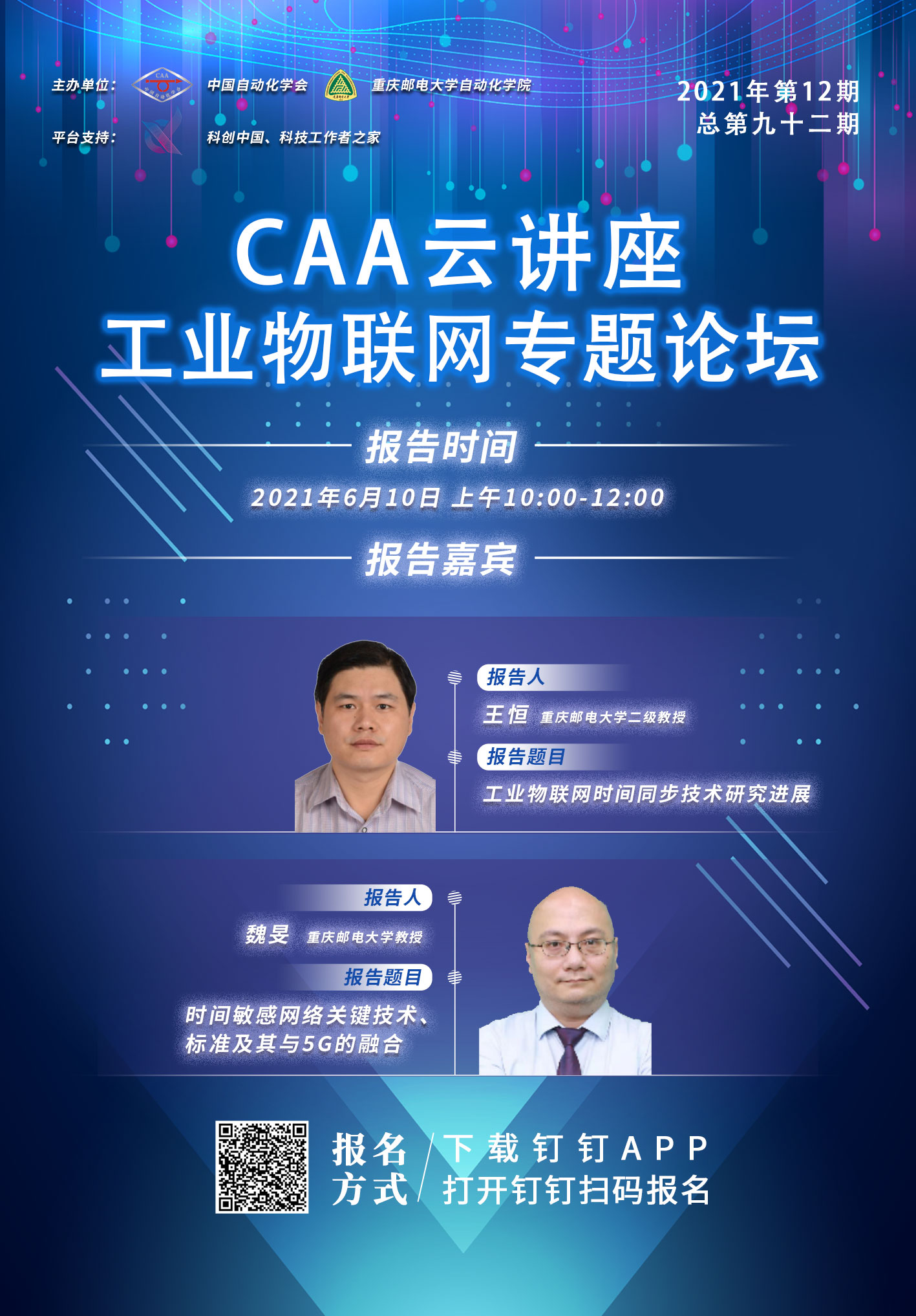 由欧冠联赛官网和重庆邮电大学自动化学院联合举办的CAA云讲座—工业物联网专题论坛,将于2021年6月10日上午10:00-12:00举行。本次论坛由重庆邮电大学二级教授王恒带来报告“工业物联网时间同步技术研究进展”,重庆邮电大学教授魏旻带来报告“时间敏感网络关键技术、标准及其与5G的融合”。精彩内容,敬请期待!