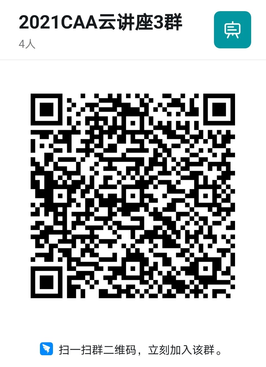 2、打开钉钉扫一扫,扫描下方二维码加入2021CAA云讲座3群(如您之前已经加入云讲座群,则不必再加入该群,届时将多群联播,任何一个群均可观看直播)。