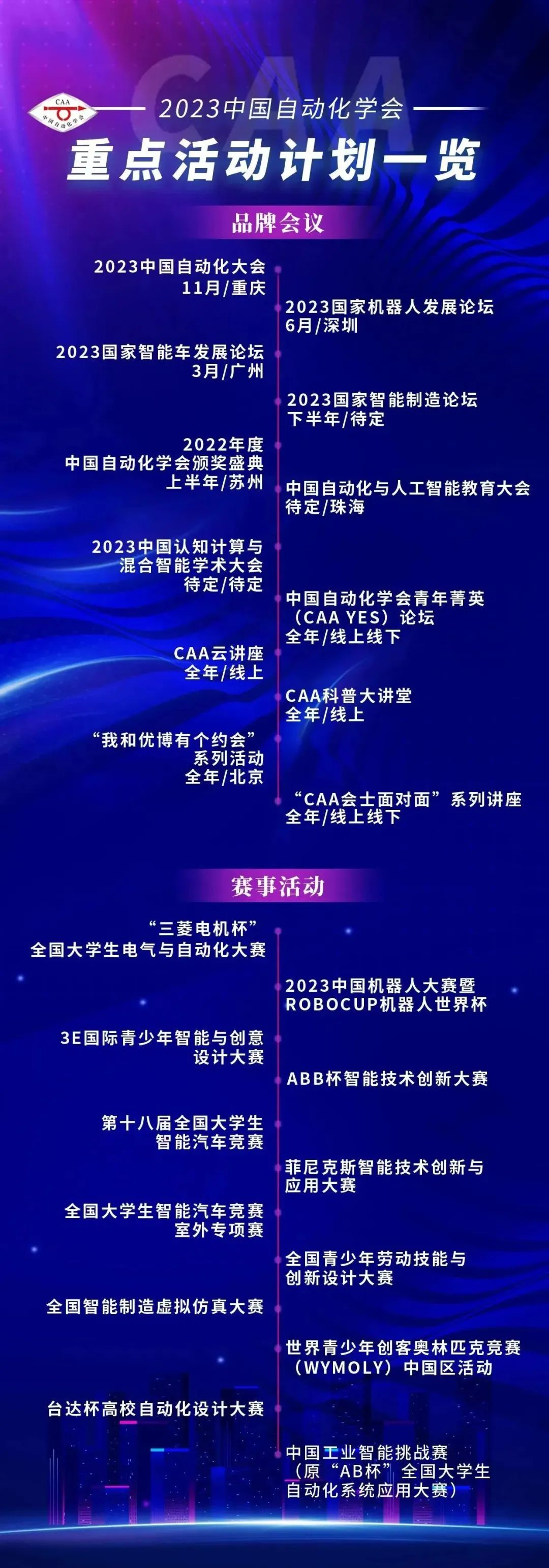 活跃学术交流,助力学科发展。2023年,欧冠联赛官网将举办一系列品牌会议和系列赛事,在积极服务自动化、信息及智能科技领域的广大科技工作者的同时,积极助推自动化科学技术繁荣和发展、促进自动化科技的普及和推广、促进自动化科技人才的成长和提高。2023,期待与您并肩携手,一起向未来!
