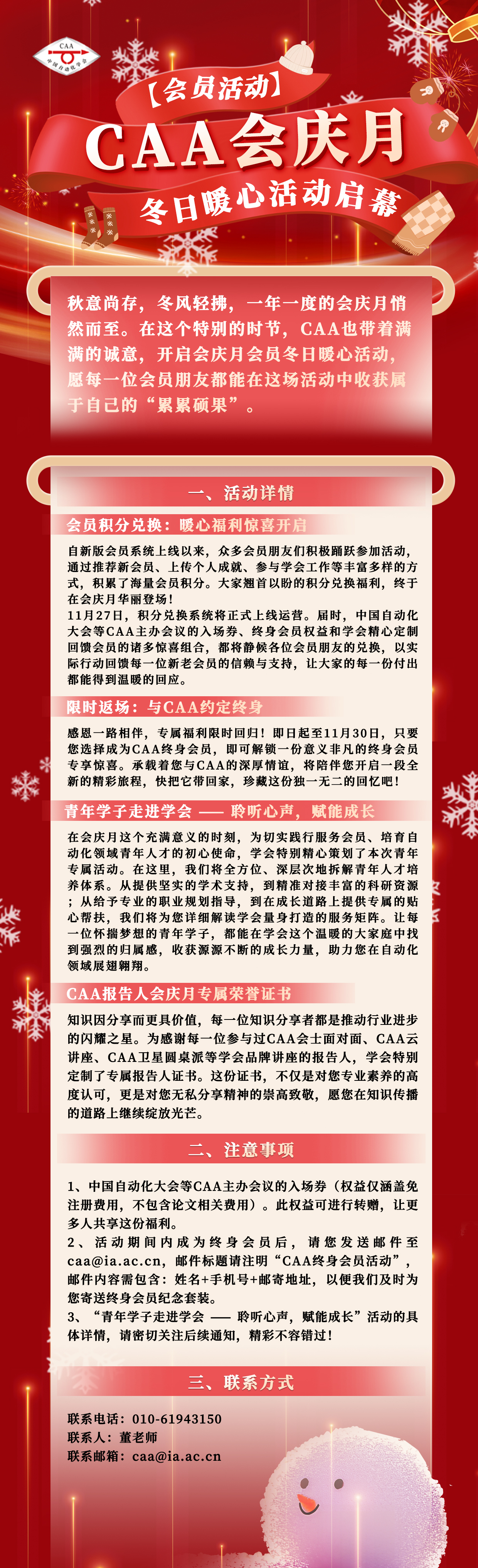 秋意尚存,冬风轻拂,一年一度的会庆月悄然而至。在这个特别的时节,CAA也带着满满的诚意,开启会庆月会员冬日暖心活动,愿每一位会员朋友都能在这场活动中收获属于自己的累累硕果