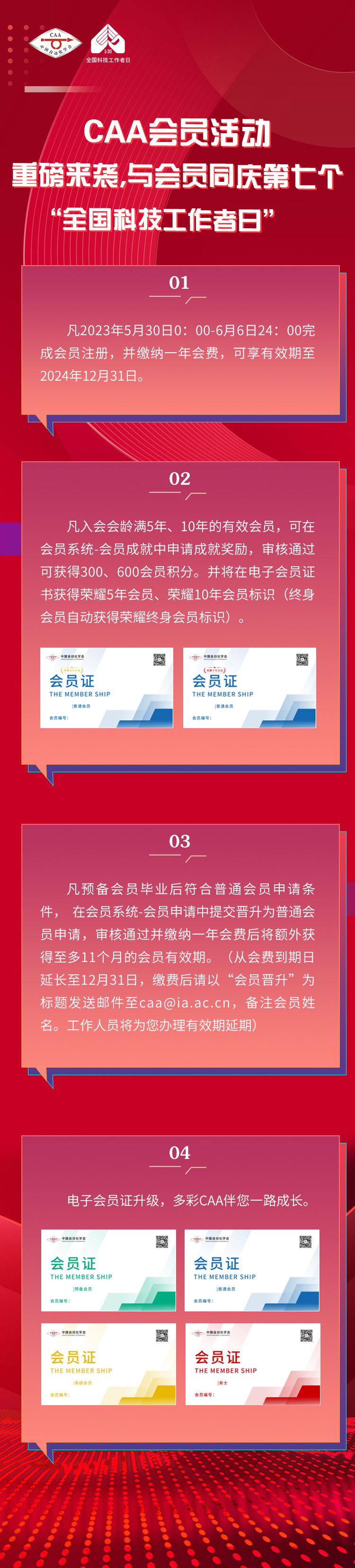 凡预备会员毕业后符合普通会员申请条件,在会员系统-会员申请中提交晋升为普通会员申请,审核通过并缴纳一年会费后将额外获得至多11个月的会员有效期。(从会费到期日延长至12月31日,缴费后请以“会员晋升”为标题发送邮件至caa@ia.ac.cn,备注会员姓名。工作人员将为您办理有效期延期)