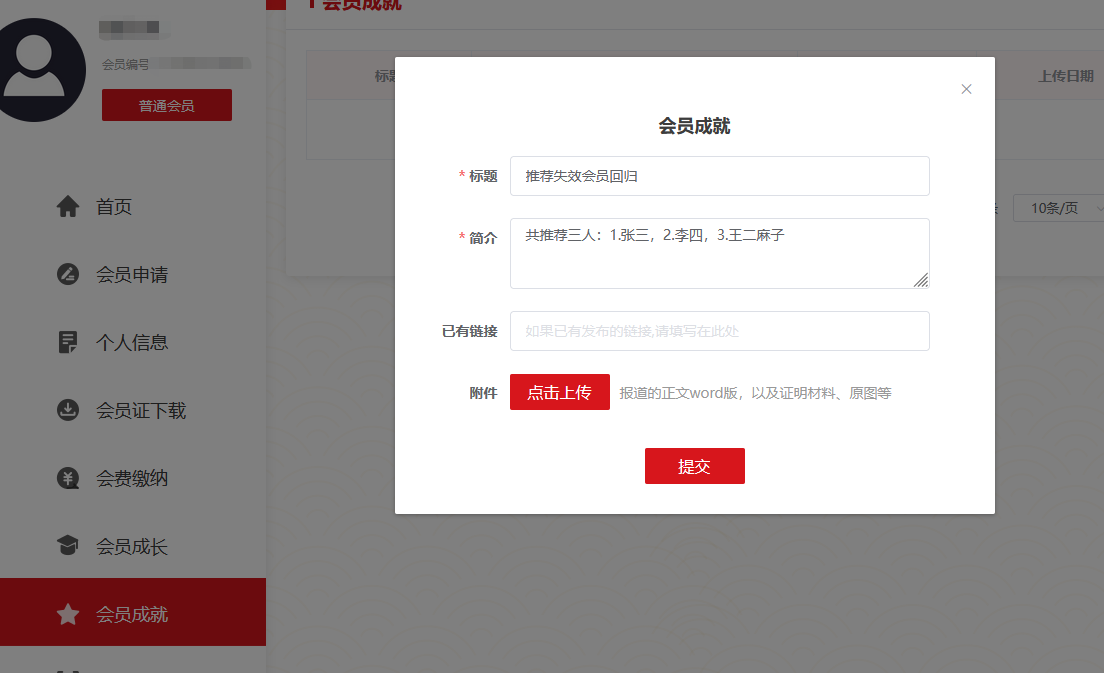 推荐失效会员回归,请登录会员系统——会员成就当中,以”推荐失效会员回归“为标题,将推荐名单在”简介“中填写。