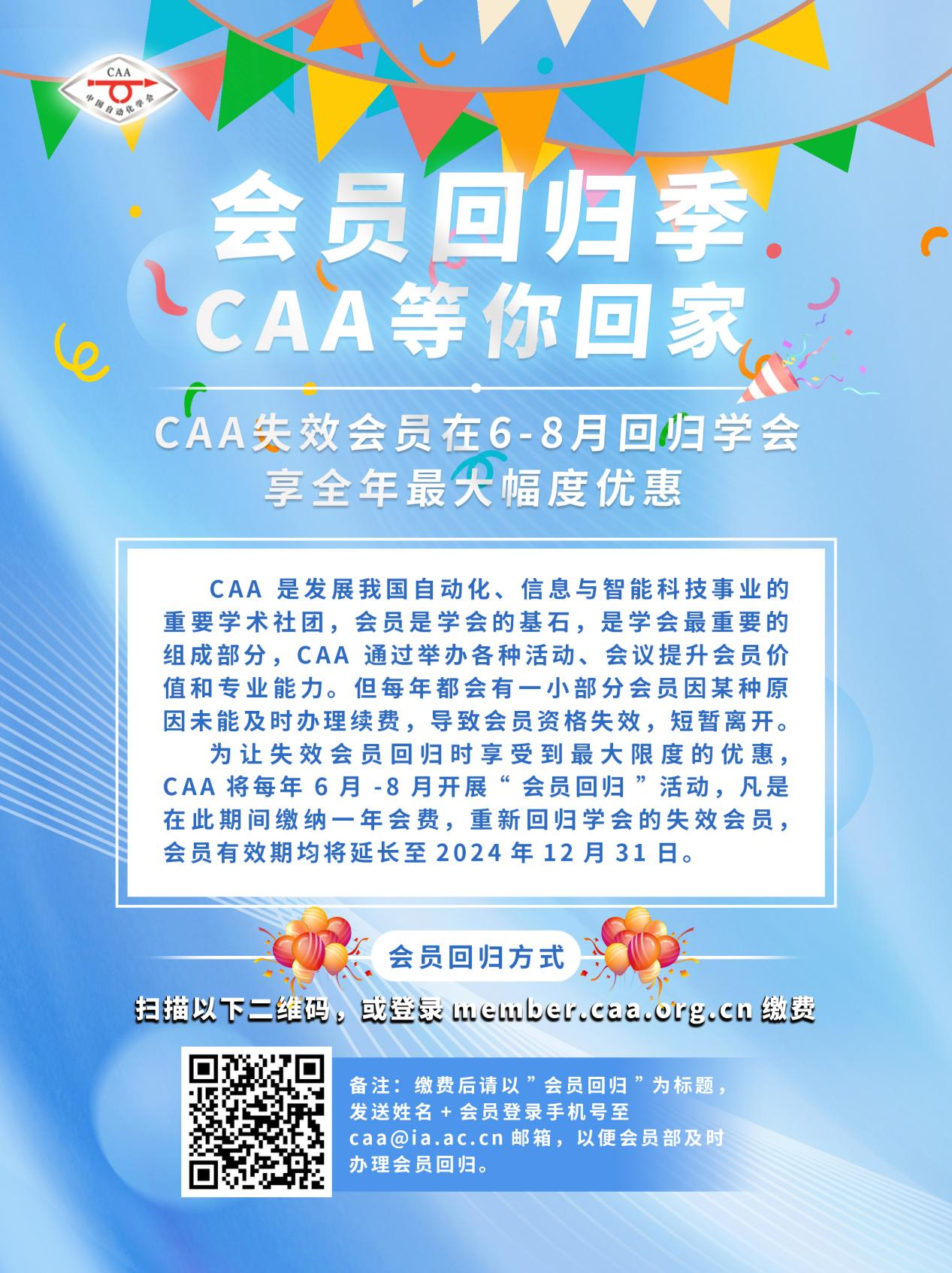 CAA是发展我国自动化、信息与智能科技事业的重要学术社团,会员是学会的基石,是学会最重要的组成部分,CAA通过举办各种活动、会议提升会员价值和专业能力。但每年都会有一小部分会员因某种原因未能及时办理续费,导致会员资格失效,短暂离开。
