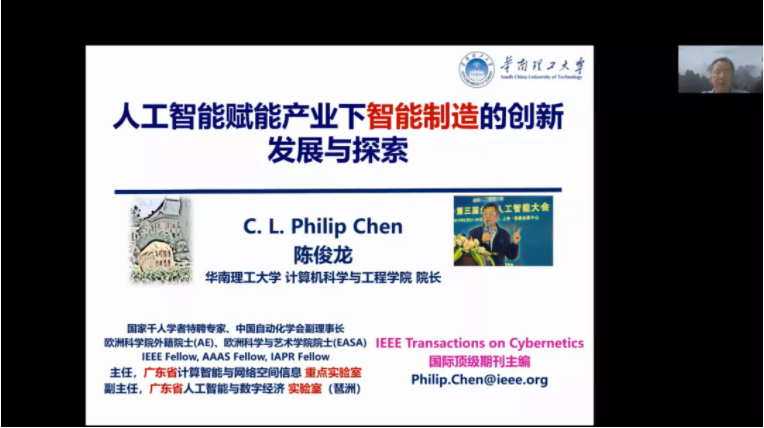 欧洲科学院院士,欧冠联赛官网会士、副理事长,华南理工大学教授陈俊龙通过线上方式作了题为“人工智能赋能产业下智能制造的创新发展与探索”的报告,报告分享了对工业互联网的相关政策、发展现状分析以及人工智能相关项目的研究情况。