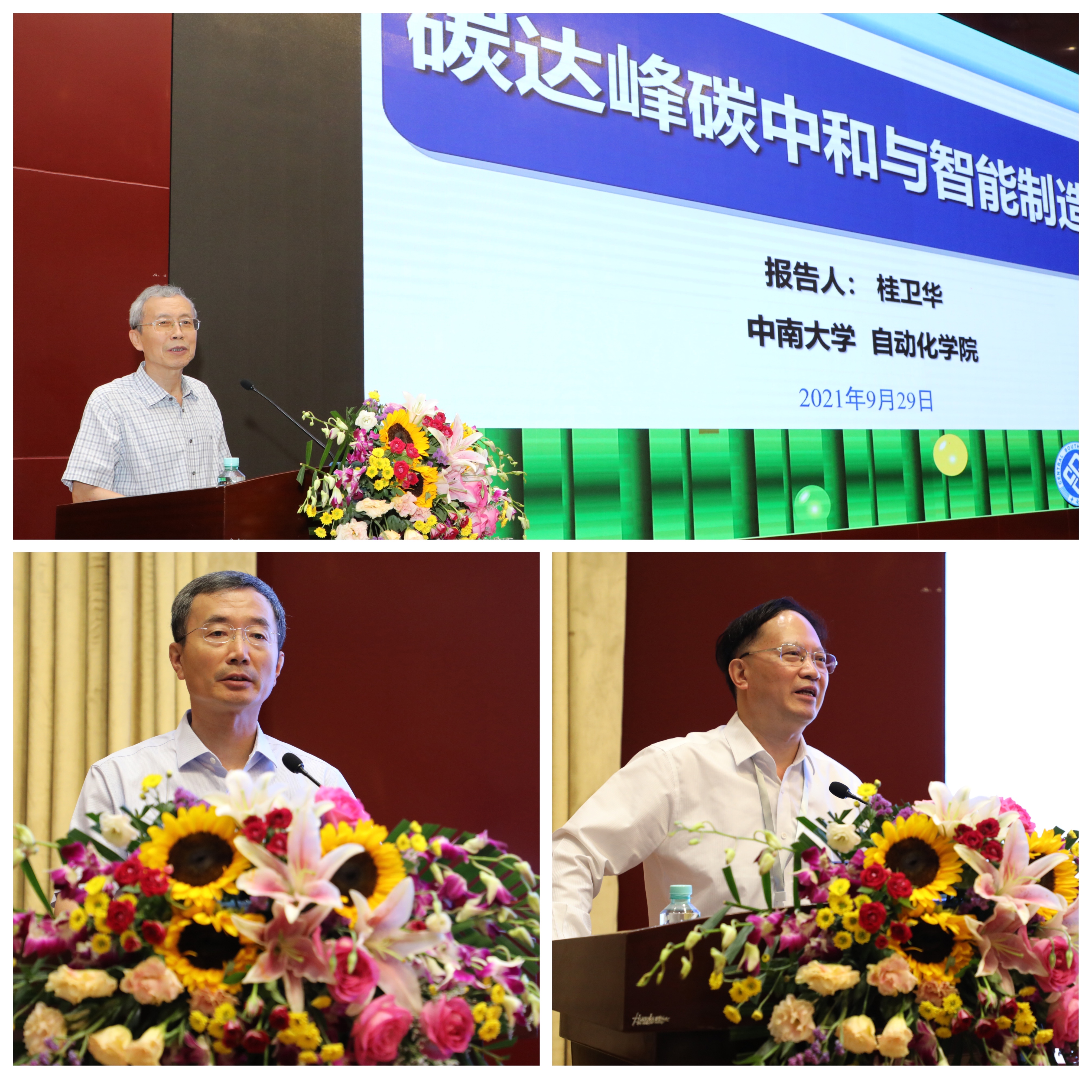 开幕式后,中国工程院院士、中南大学教授桂卫华做了题为《碳达峰碳中和与智能制造》的学术报告,报告从“碳达峰、碳中和”国家战略出发,结合我国有色金属工业碳达峰碳中和现状与降碳技术途径,分析信息技术如何助力“双碳”战略,并通过应用案例说明智能制造技术是实现国家“双碳”战略的重要手段之一,期望广大研究人员了解和关注国家发展战略,并明确“双碳”战略给科学研究和人才培养带来的新机遇与新挑战。