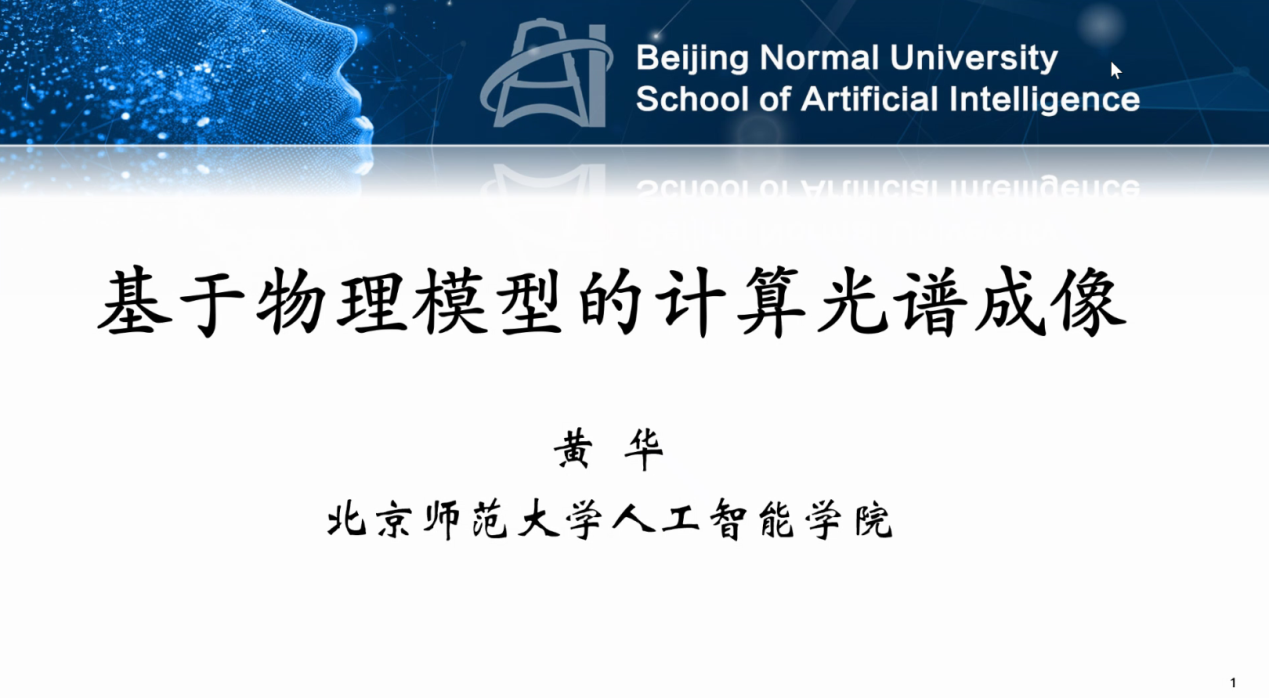 黄华教授的报告题目是“基于物理模型的计算光谱成像”。黄教授首先介绍光谱及光谱图像的应用、传统光谱成像技术和快照光谱成像技术,还介绍编码感知计算光谱成像及其存在的成像速度和精度的问题。针对上述问题,黄教授介绍其团队在编码感知计算光谱成像的物理模型和重构算法方面的研究成果。从计算光谱成像的系统组成入手,分析光信息传递的物理规律,建立基于物理的系统前向模型。在分析计算光谱成像重构算法的基本模型之后,基于深度展开的计算重构思想,融合准确的物理模型与先进的图像先验,实现高质量高速度的计算光谱成像。