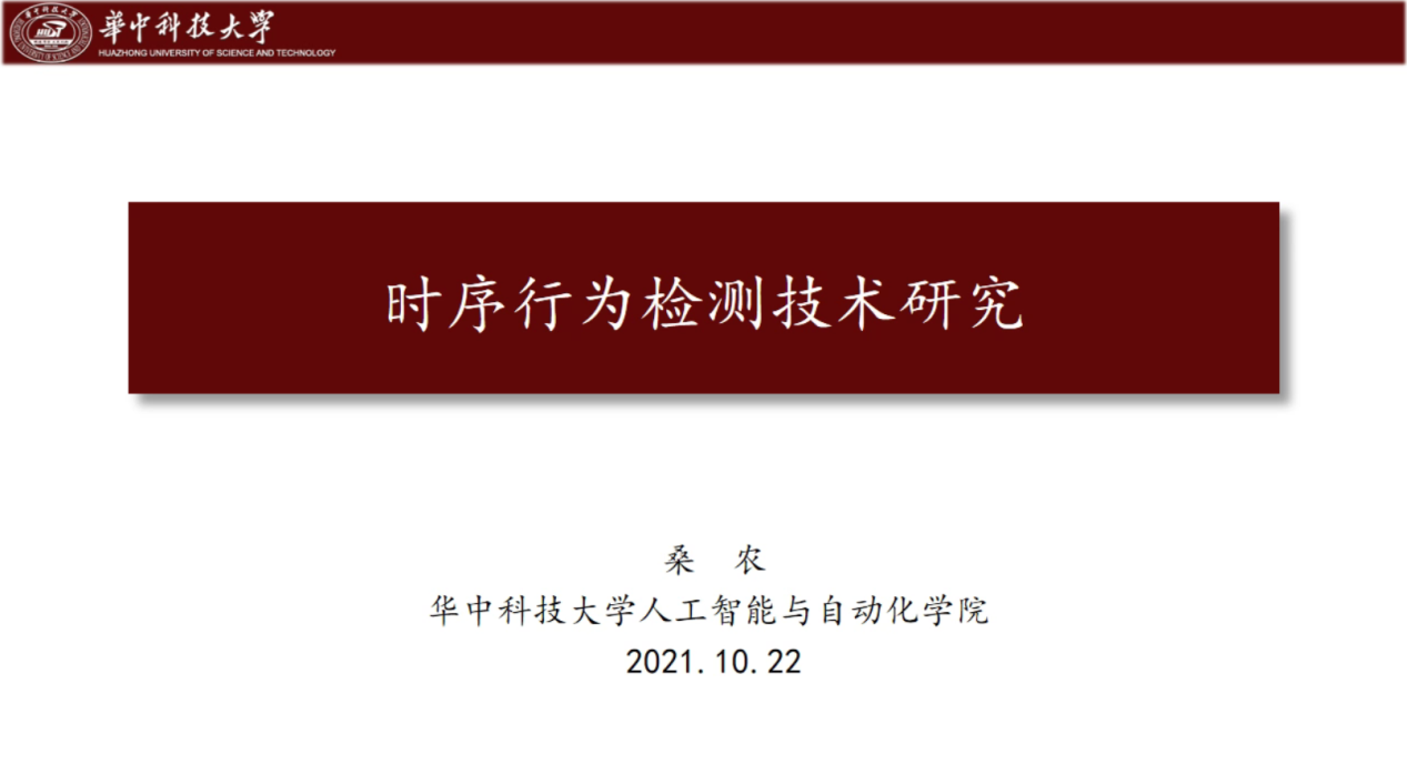 桑农教授的报告题目是“时序行为检测技术研究”。桑教授首先介绍时序行为检测背景及意义,包括该技术的在多个领域的实际应用及相关数据集,然后介绍若干个目前时序行为检测的前沿方法,包括传统的方法和基于深度学习的方法。桑教授详细介绍他们团队研究提出的时序边界微调算法、将自监督引入半监督时序行为检测的方法。最后在总结和展望中,桑教授指出设计轻型网络以提高检测效率、有效界定检测边界和半监督及自监督应用是以后的研究方向。