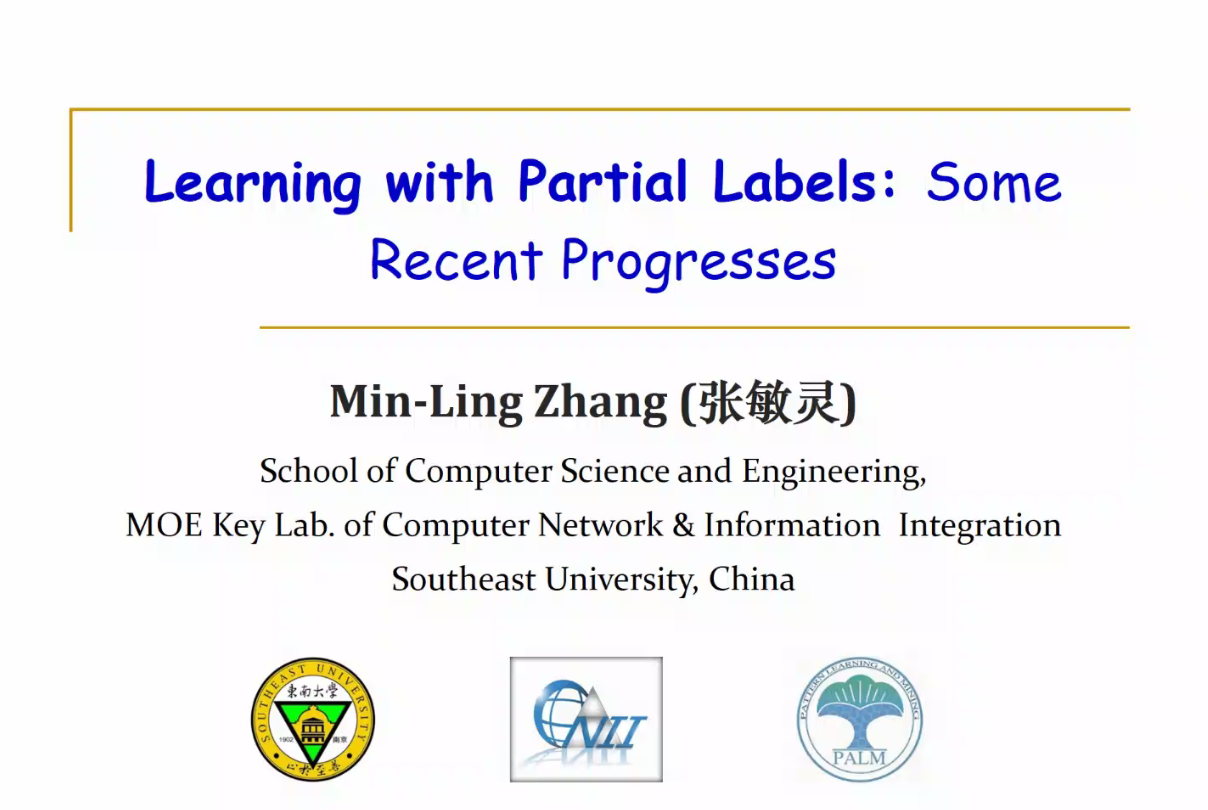张敏灵教授的报告题目是“偏标记学习的研究:最新进展”。张教授首先分析传统强监督学习的缺陷,举例说明包括半监督学习、多标记学习、多实例学习在内的弱监督学习范式。偏标记学习在多媒体内容自动标注、自然语言处理、生态信息学等领域得到成功应用,张教授分析偏标记学习与半监督学习、多标记学习、多实例学习的异同点,指出现阶段偏标记学习的关键问题是标记消歧,基于真实标记辨识策略和候选标记平均策略介绍现阶段一些主要偏标记学习方法,最后给出偏标记学习的相关学术资源。