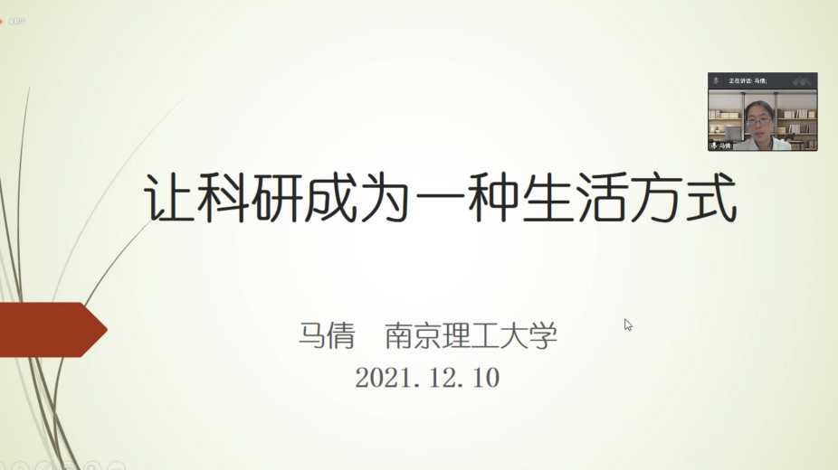 南京理工大学自动化学院教授马倩发表了题为“让科研成为一种生活方式”的报告,围绕自身的科研之路,谈自己在科研工作上的心得和体会。马倩教授给女科技工作者提出六条建议:善做时间管理、避免闭门造车、保持自信热情、平衡科研生活、庆祝点滴成就、好好照顾自己。做到这六条,将科研融入生活中去,就更能处理好科研和生活的平衡。