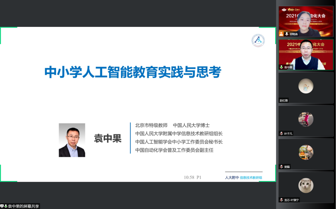 中国人民大学附属中学袁中果高级教师“中小学人工智能教育实践与思考”