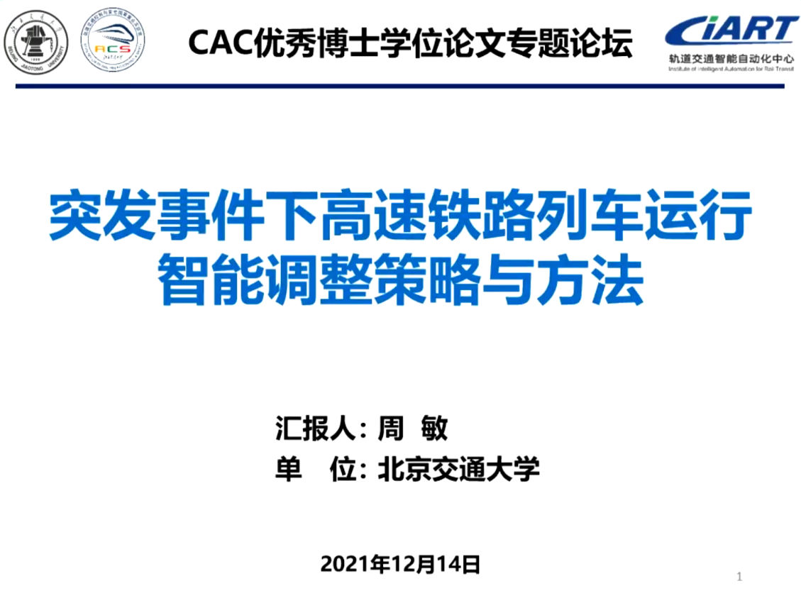 周敏: 突发事件下高速铁路列车运行智能调整策略与方法