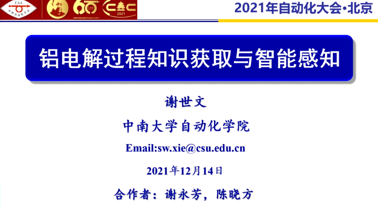 第三位报告人是来自中南大学的谢世文副教授,他报告的题目是“铝电解过程知识获取与智能感知”。报告中针对当前铝电解槽的状态感知主要依靠有经验的专家,存在主观性以及专家经验难以传承的问题,基于铝电解过程中获取的多源异构数据,挖掘出了与电解槽当前状态相关的知识,并融合多源异类数据与知识,实现了对铝电解槽当前状态的智能感知。