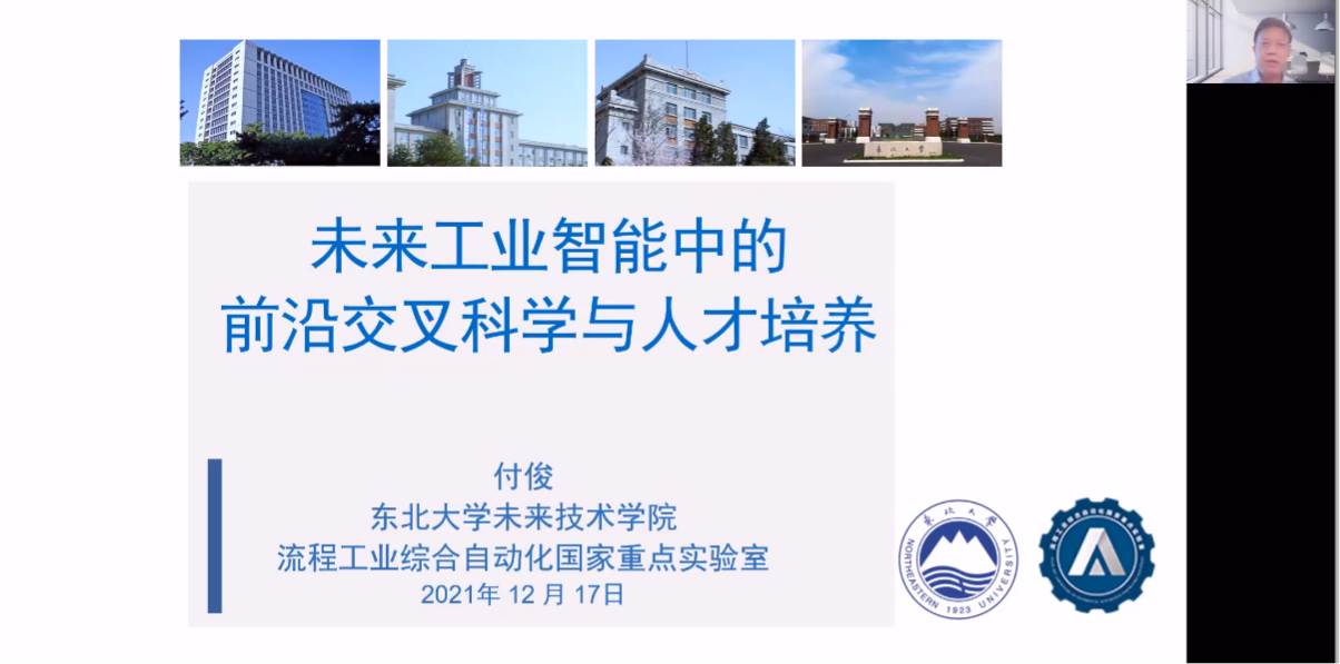 东北大学付俊教授作了题为“未来工业智能中的前沿交叉科学与人才培养”的报告。报告结合东北大学未来技术学院建设方案,分析了未来工业智能内涵及面临的挑战与机遇,提出未来工业智能的研究方向,探索未来工业智能领军人才培养新范式。