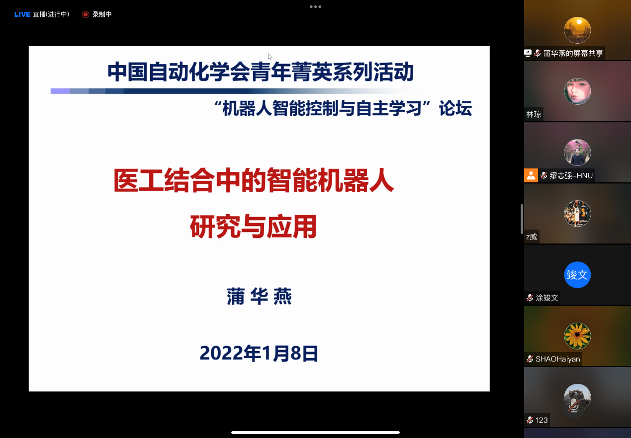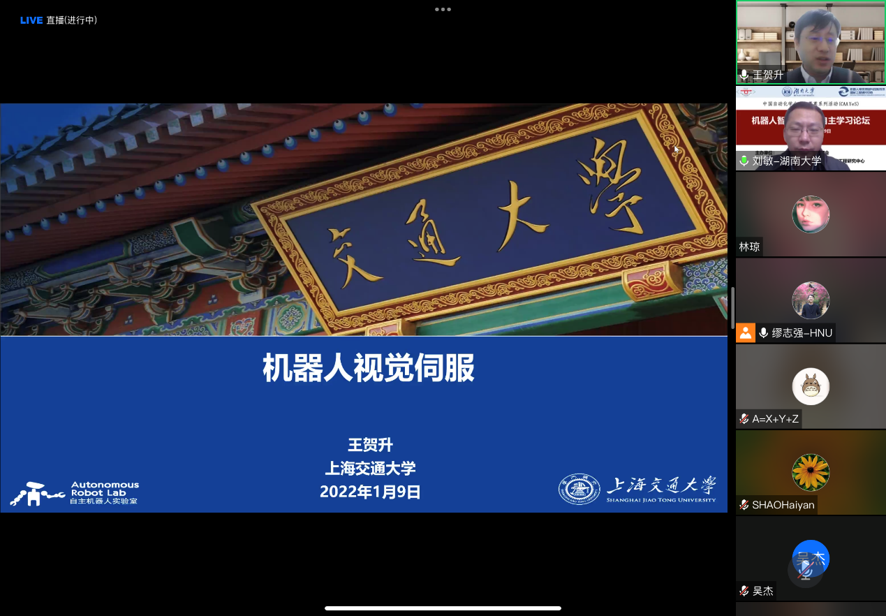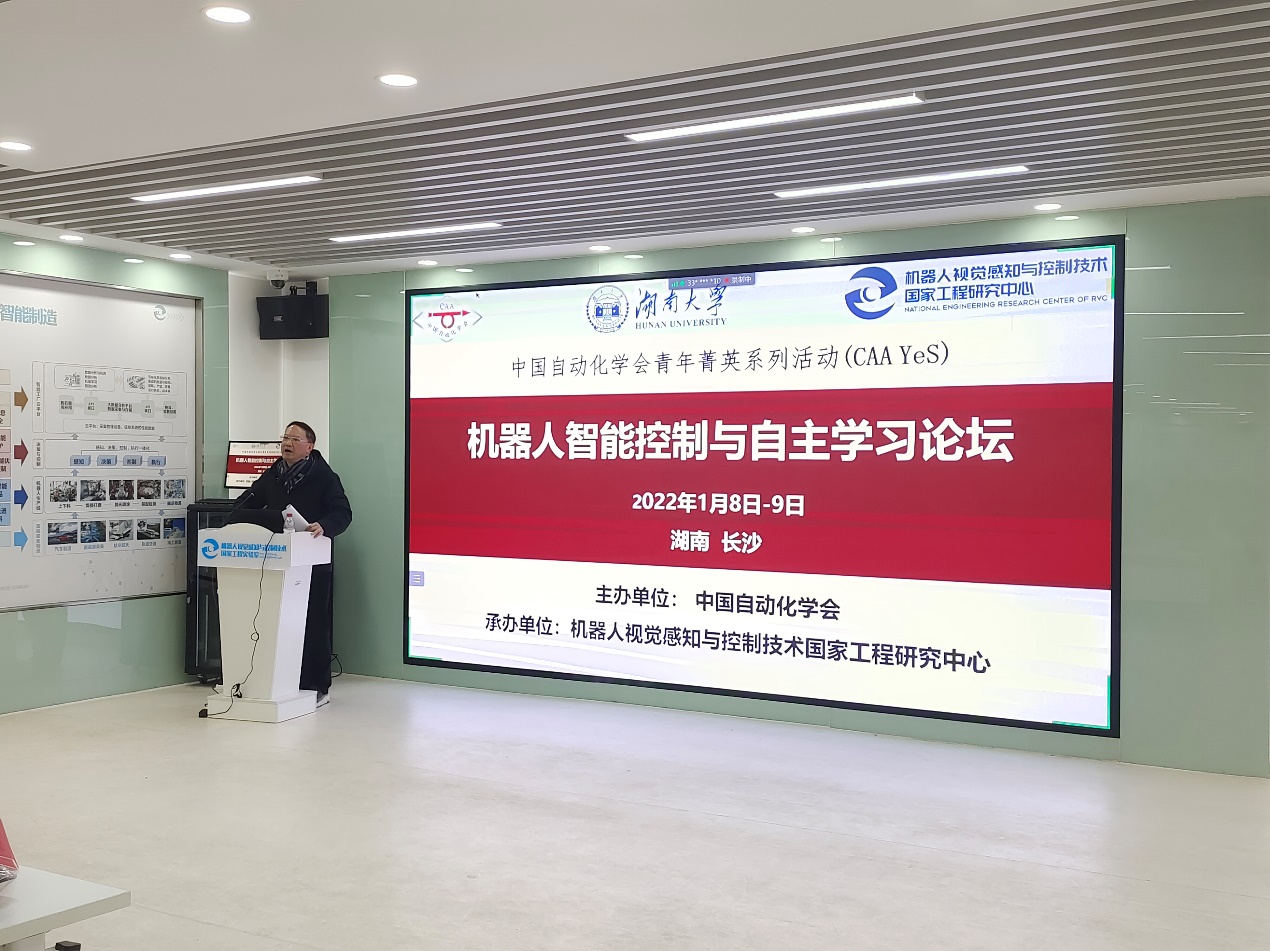 为了推进机器人与自动化等领域的学术交流,由欧冠联赛官网主办、湖南大学机器人视觉感知与控制技术国家工程研究中心等承办的主题为“机器人智能控制与自主学习”的CAA YeS论坛于2022年1月8日-9日于线上/线下混合形式圆满召开。中国工程院院士,欧冠联赛官网会士,常务理事,湖南大学机器人视觉感知与控制技术国家工程研究中心主任王耀南院士担任本次论坛主席,湖南大学电气与信息工程学院缪志强副教授担任本次论坛组织主席,湖南大学机器人学院张辉教授担任本次论坛共同组织主席。论坛邀请了25位来自国内外知名高校和企业的优秀科技工作者做主题报告,共同研讨机器人智能控制和自主学习理论和应用等方面所面临的机遇及挑战,线上总参会人数达500多人次。