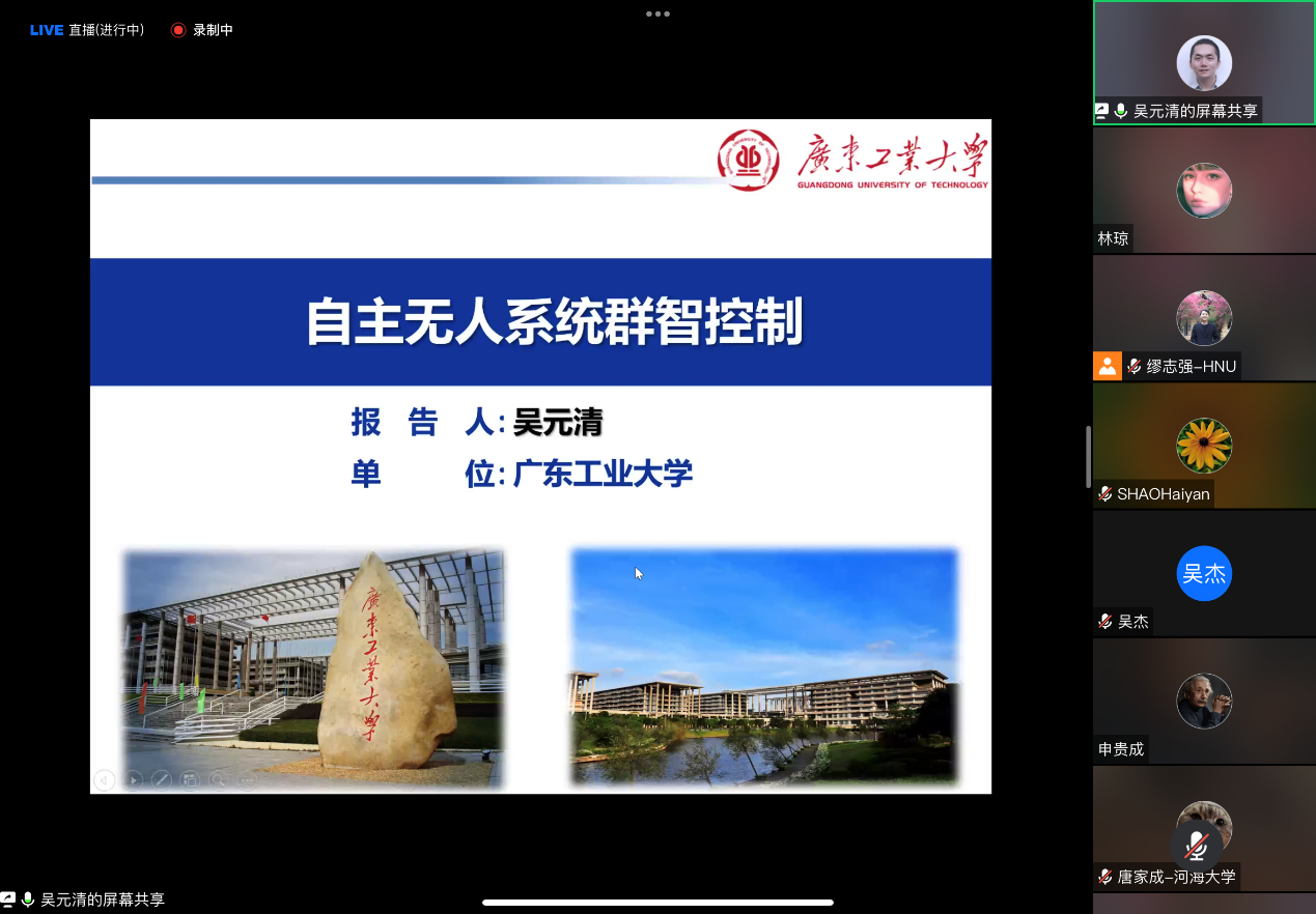第十七位报告人为来自广东工业大学的吴元清教授,报告题目为“自主无人系统群智控制”。吴元清教授在报告中表示,随着自主无人系统的应用环境与任务要求进一步多样化、复杂化与智能化,现有的自主无人系统建模与控制方法已经无法满足日趋复杂多变的任务需求。针对自主无人系统存在的科学问题,设计了自主无人系统的机械设计、加工制造、电路板设计、集成组装 4 个流程,并将算法应用于智能无人巡逻车及机械狗。其团队自主研制了智能无人巡逻车及机械狗的电控系统、通讯系统、定位系统,视觉处理系统、上位机系统和群智控制系统这 6 个主要系统,实现了智能无人巡逻车及机械狗的电机驱动与控制、信息采集与信息传输、室内外定位、视觉图像获取与处理、远程控制与数据分析,群智协同控制与平台搭建。