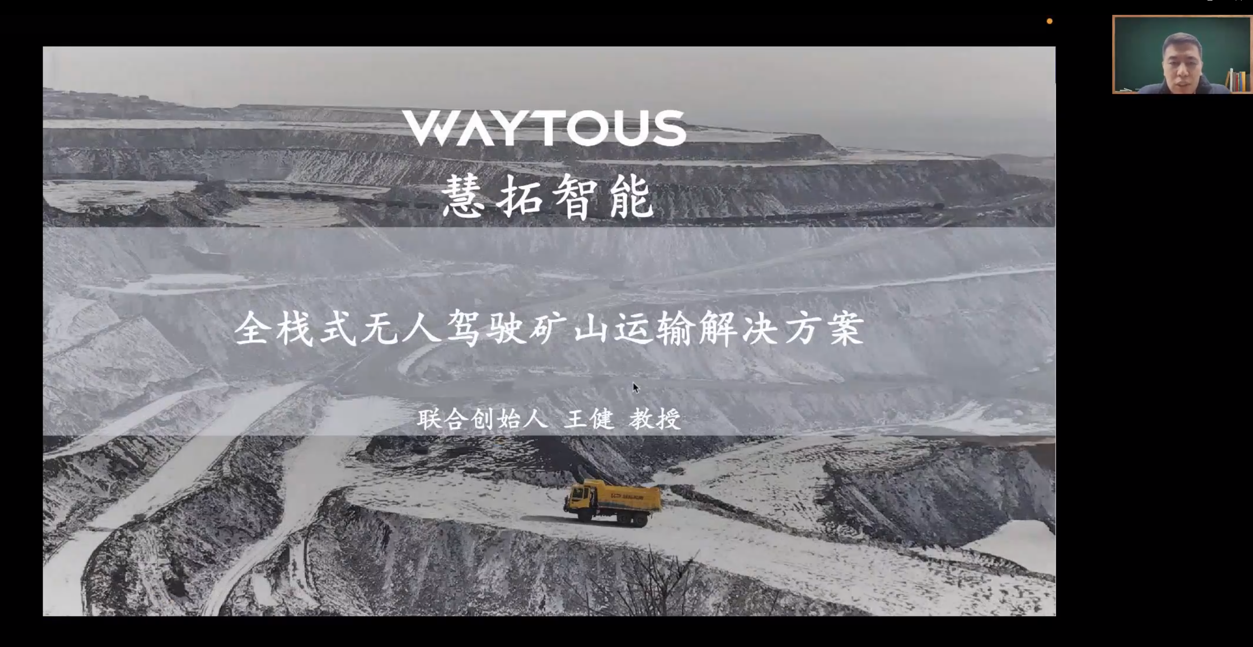 第十八位报告人为来自吉林大学的王健教授,报告题目为“全栈式无人矿山运输解决方案”。报告中,王健教授介绍了“愚公”全栈式无人矿山运输解决方案,包括:调度系统、仿真系统、应急系统、车辆系统、协同系统、路侧系统。同时介绍目前国内主要的露天和井下应用案例。