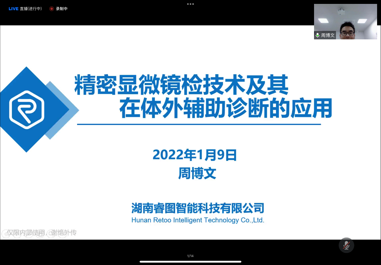 第二十一位报告人为湖南睿图智能科技有限公司的周博文总经理,报告题目为“精密显微成像技术及其在智慧医疗上的应用”。报告中,周博文总经理在报告中详细阐述智慧医疗新技术,通过显微成像技术,对细胞进行快速检测和识别,用于体外辅助诊断、病理诊断等。