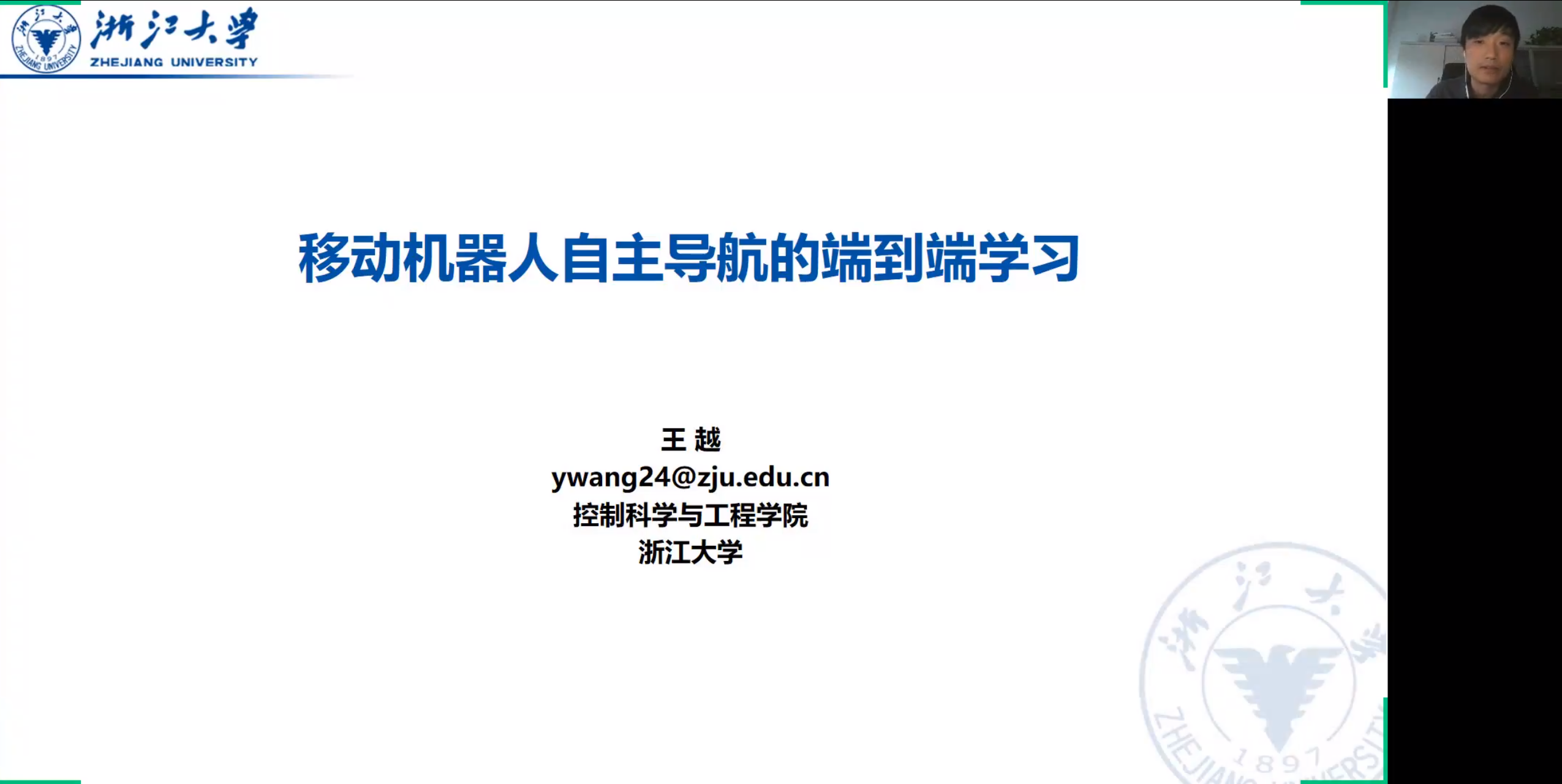 第二十三位报告人为来自浙江大学的王越副教授,报告题目为“移动机器人自主导航的端到端学习”。报告中,王教授以导航中的核心环节——定位为对象,介绍课题组基于端到端学习的解决方案,包括地点识别、位姿估计、融合定位等模块。并重点介绍如何在这些模块中将传统方法和端到端方法相结合,从而有效提升学习模型的可解释性和泛化性。报告还展示了相关技术在实际系统中的测试和应用,验证和探索可行性。