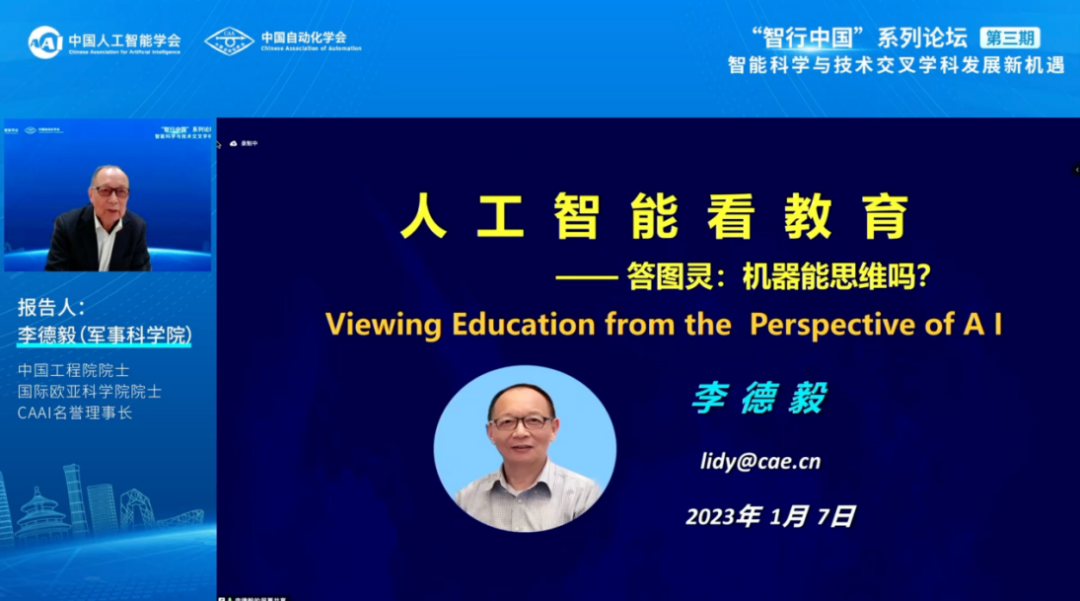 中国工程院院士、欧亚科学院院士、中国人工智能学会和中国指挥与控制学会名誉理事长李德毅发表题为“人工智能看教育——答图灵:机器能够思维吗?”的主旨报告。李德毅院士表示,人类智能始于语言,人工智能始于文字,人类最伟大的智慧是发明了教育,智能植根于教育,教育让人类智能的发展从“现在进行时”变为“现在完成时”。智能机器里的物质和能量是物理层面的真实存在,结构和时间是认知层面的抽象思维。结构和时间寄生在物质和能量上,构成硬构体;机器中信息是大量的软构体,体现了精神世界,可以寄生在硬构体或者其他软构体之上,有虚有实,虚实结合,可自举和自我复用,始终至少存在下一个时间周期,使得机器能再去“想”,其秩序显示出维持自身思维和产生有序事件的能力,人的思维和机器的思维在数学上是同构的,在物理上是同源的,都赖负熵为生。这样一来,物质和信息没有鸿沟,科技和人文不再二元,这就回答了图灵 “机器能够思维吗?”的天问。智能机器的诞生冲击教育的全方位、全要素,从教“书”,演进到教“学”,再进一步演进到教“育”。智能时代教育的精髓是培育思维的想象力和创造力,人类思维的本质是抽象、联想和交互,机器亦然。机器用软构体延伸和拓展了人的思维,不但拥有记忆智能和计算智能,把人从繁重的、重复性劳动中解脱出来,还拥有具身交互智能,更重要的是,机器可以暴力思维,人和机器互教互学,优势互补,形成迭代的智能。智能时代的教育改革问题已经迫切地摆在全人类的面前,读书改变一个人,教育改变全人类,让我们迎接这场学习的革命!