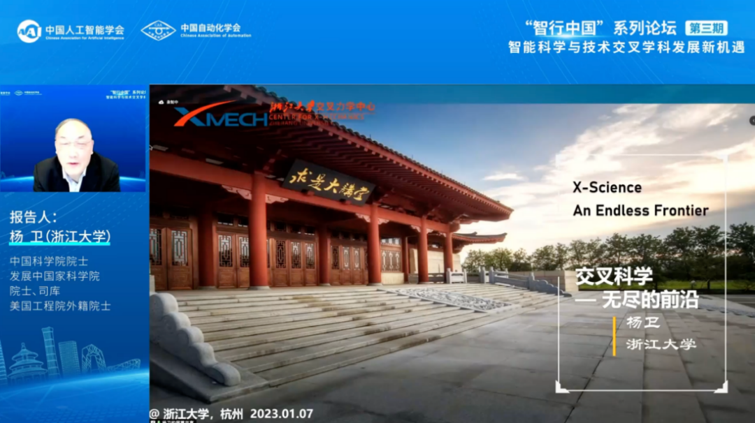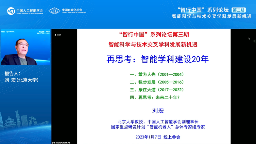 2023年1月7日,“智行中国”系列论坛第三期成功举办。本次论坛以“智能科学与技术交叉学科发展新机遇”为主题,邀请20余位人工智能领军科学家、教育家、企业家及高校学者,围绕智能科学与技术交叉学科建设、人才培养和智能科学与技术交叉学科研究前沿与应用等问题展开讨论,共同思考学科交叉和交叉学科等发展新机遇。本次线上论坛通过多个线上平台共同直播,累计在线观看人次达66.91万。