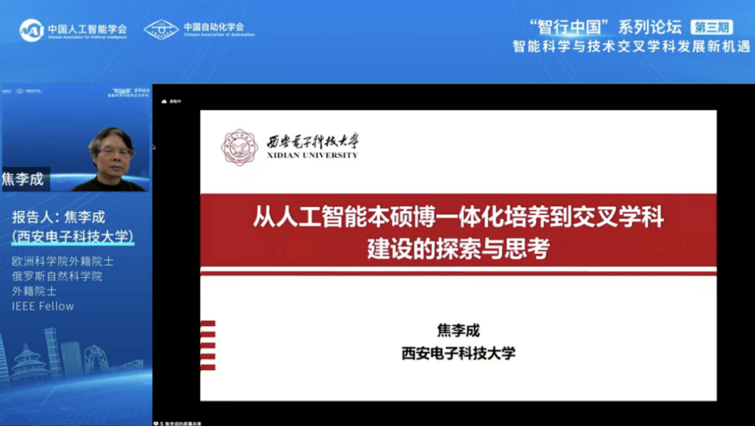 欧洲科学院外籍院士、俄罗斯自然科学院外籍院士、西安电子科技大学焦李成发表题为“从人工智能本硕博一体化培养到交叉学科建设的探索与思考”的主旨报告,他指出新一轮科技革命和产业变革蓬勃兴起,一些基本科学问题孕育重大突破,可望催生新的重大科学思想和科学理论,产生颠覆性技术。人工智能技术作为当今社会的主要生产力,为社会不断赋能,在诸多行业和领域取得了非常显著的成效。我国高度重视人工智能的发展,制定了诸多战略方针,发展人工智能,引领人工智能。焦李成教授回顾了人工智能及其核心技术的内涵与发展,以及其发展过程中变革和存在的挑战,紧接着从人工智能专业建设到交叉学科的特性展开讨论,最后给出了未来的一些思考。