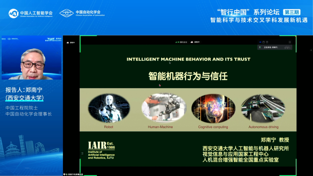 中国工程院院士、欧冠联赛官网理事长、西安交通大学人工智能与机器人研究所所长郑南宁作报告
