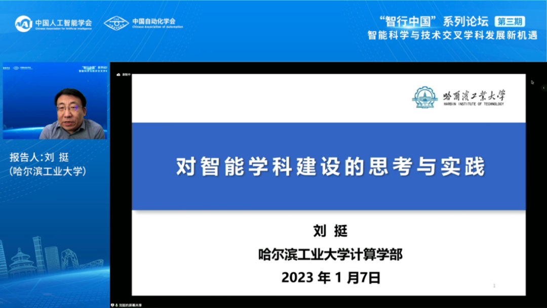中国人工智能学会教育工作委员会副主任委员、哈尔滨工业大学校长助理、哈工大计算学部主任兼计算机学院院长、自然语言处理研究所所长刘挺作报告
