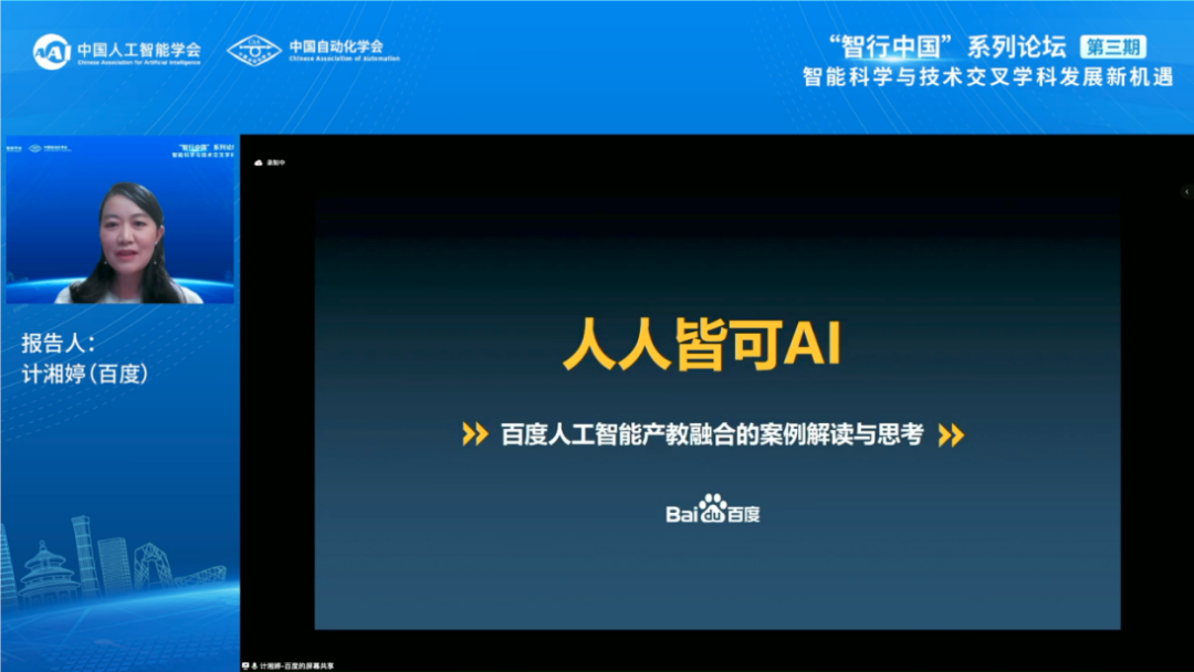 百度高校合作部副总监计湘婷发表题为“人人皆可AI——百度人工智能人才培养实践案例解读与思考”的主旨报告,她提出高校AI人才培养如何更顺滑地衔接传统产业转型的需求、培养卓越工程师,高校和企业应如何更务实地开展合作的问题。AI赋能之下,各行各业发生了新的剧变,具备新的特点,对我国AI人才培养也提出了新的挑战——高校在AI专业建设、师资队伍、课程设置、实训实践等方面面临着教育理念更新、知识结构重塑等各类问题。她从产业视角出发,解析AI人才培养的特点和实现路径,并结合百度AI人才培养的诸多成功案例,如松果AI菁英班、AI+X课程共建、AI微专业共建等,尝试为校企AI人才培养探索出一个更有效、更易落地的产教融合新范式。