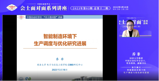 2023年第三期(总第十三期)会士面对面讲座于2023年3月16日上午成功召开,欧冠联赛官网会士、常务理事、副秘书长,同济大学乔非教授作题为“智能制造环境下的生产调度与优化研究进展”的报告。