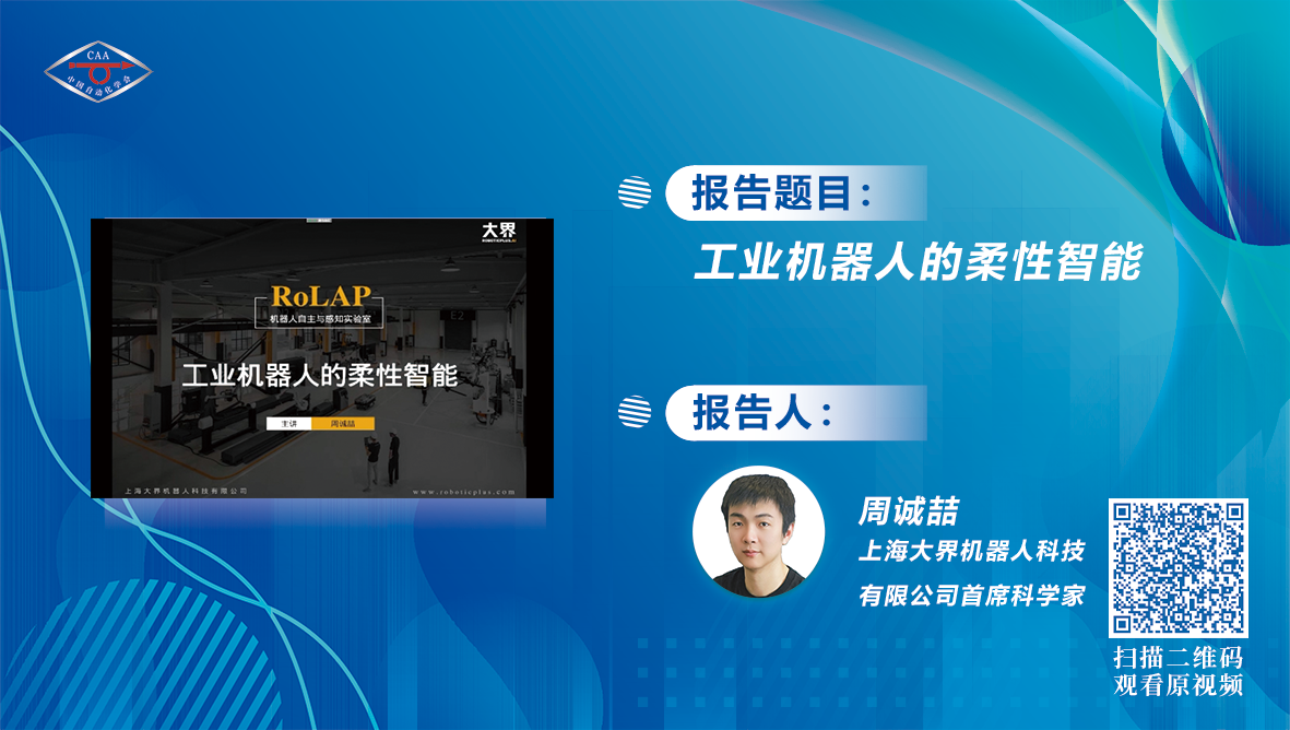 2023年4月19日上海大界机器人科技有限公司首席科学家周诚喆博士做客“CAA云讲座”并作题为“工业机器人的柔性智能”的报告。本次讲座围绕具有柔性智能的高质量工业机器人加工制造系统展开,周博士首先介绍了发展工业机器人的意义,制造加工领域和消费级场景的区别。通过结合大界机器人自主与感知实验室(RoLAP)中展示的工业场景介绍了包括视觉传感器、机械臂以及任务规划等模块在算法层面上的发展、挑战和机遇。让听众从算法层面了解工业机器人在智能制造领域中落地所需要解决的问题以及未来的发展方向。他指出柔性和智能是工业机器人的未来。