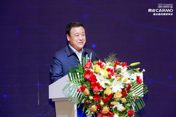 随后,中科慧拓CEO陈龙发布并介绍了矿山智能运载机器人“载山CarMo”的技术亮点及系统优势。“载山CarMo”开创性地取消了传统驾驶室,关键部件国产化率在95%以上,是一款真正意义的全时无人驾驶矿山运输设备。目前该装备已投入无人化编组运行,对于推动未来矿山“减人增安”、促进矿山本质安全高质量发展具有标志性推动作用。