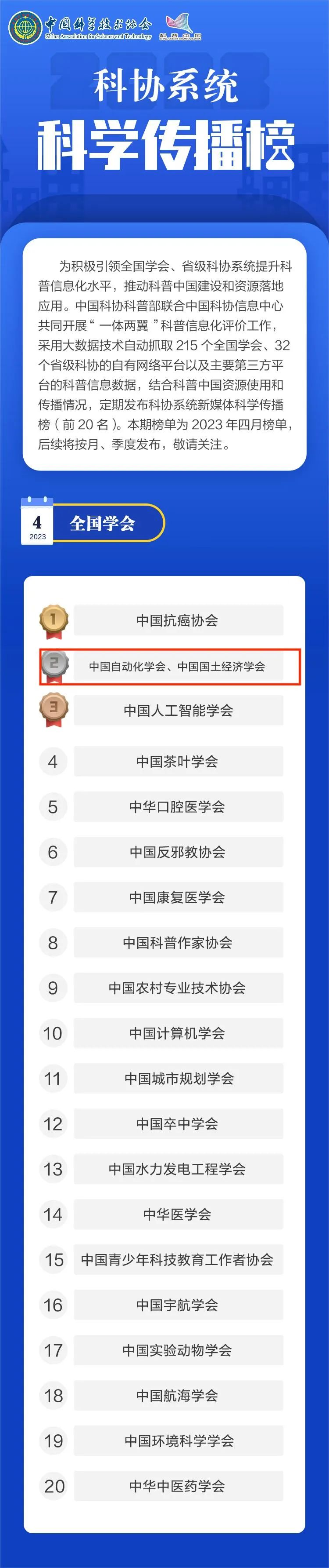 近日,中国科协发布科协系统科学传播榜。中国科协科普部联合中国科协信息中心共同开展“一体两翼”科普信息化评价工作,采用大数据技术自动抓取215个全国学会、32个省级科协的自有网络平台以及主要第三方平台的科普信息数据,结合科普中国资源使用和传播情况,定期发布科协系统新媒体科学传播榜(前20名)。