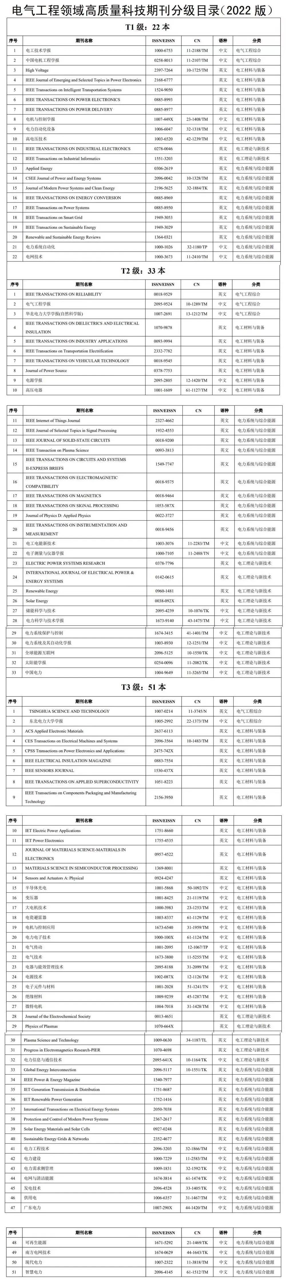 近日,电气工程领域高质量科技期刊分级目录(2022版)已正式发布,《电气传动》成功入选。