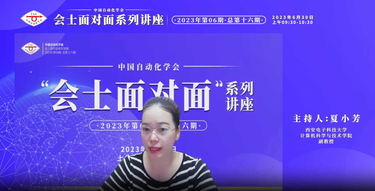 本次活动由中国科协“青年人才托举工程’入选者、西安电子科技大学副教授夏小芳主持,通过腾讯会议、CAA会议小程序、CAA官方视频号、学会微博官方账号、百家号、蔻享学术等平台全程直播,共计7.5万人次在线观看直播。