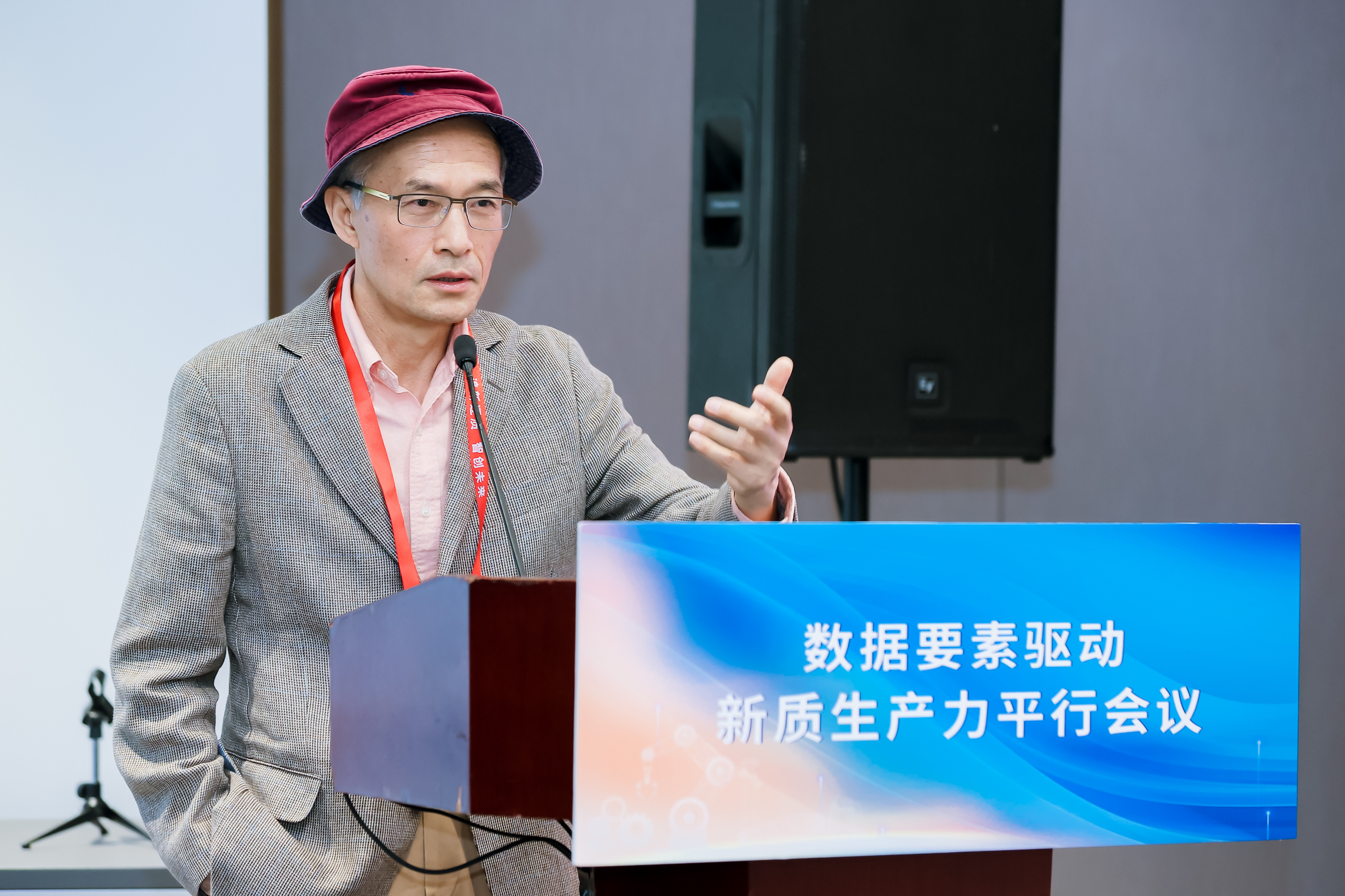 在主旨报告环节,清华大学国家治理研究院执行院长、“长江学者”特聘教授孟庆国带来会议第一场报告——“数据要素赋能新质生产力:逻辑与机制”。报告聚焦数据强渗透性、低成本复用和非竞争性等特性,探讨利用数据要素乘数效应在提高资源配置效率、创造新产业新模式、培育发展新动能方面的作用逻辑、环节和途径。