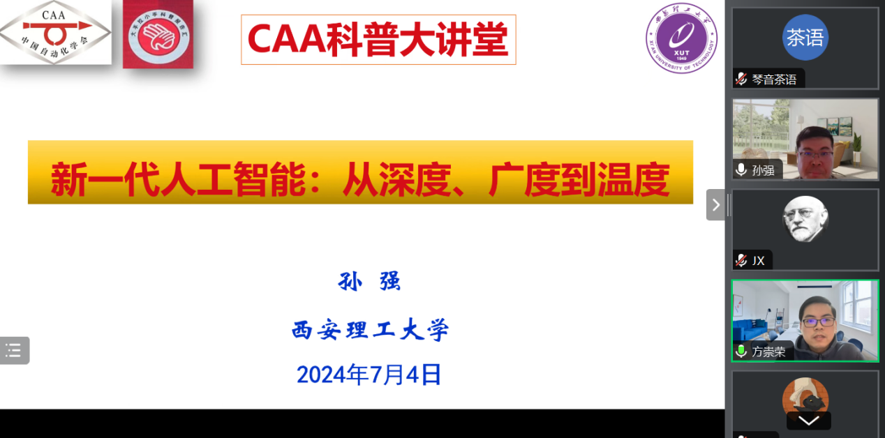 2024年7月4日上午,欧冠联赛官网普及工作委员会委员、中国科普作家协会科普教育专委会委员、科普中国专家、西安理工大学孙强副教授做客2024年第四期科普大讲堂,为大家带来题为“新一代人工智能,深度,广度,温度”的报告。
