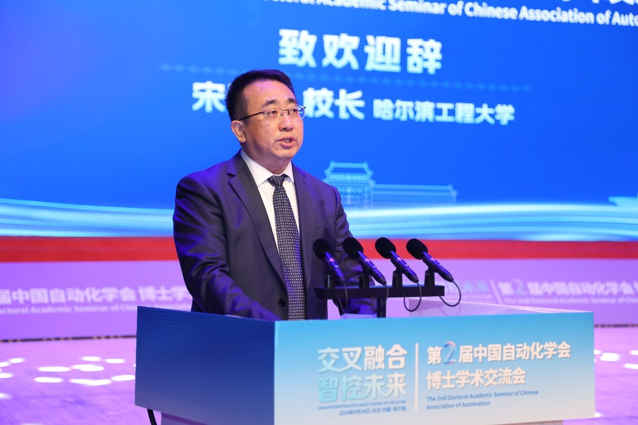 哈尔滨工程大学党委副书记、校长宋迎东致欢迎辞。宋迎东表示,大会是加强自动化领域交流合作的重要平台,希望与会专家学者充分交流研讨,积极探索自动化领域及人工智能新方向,共同推动学科发展和技术进步,促进自动化领域的发展与繁荣。
