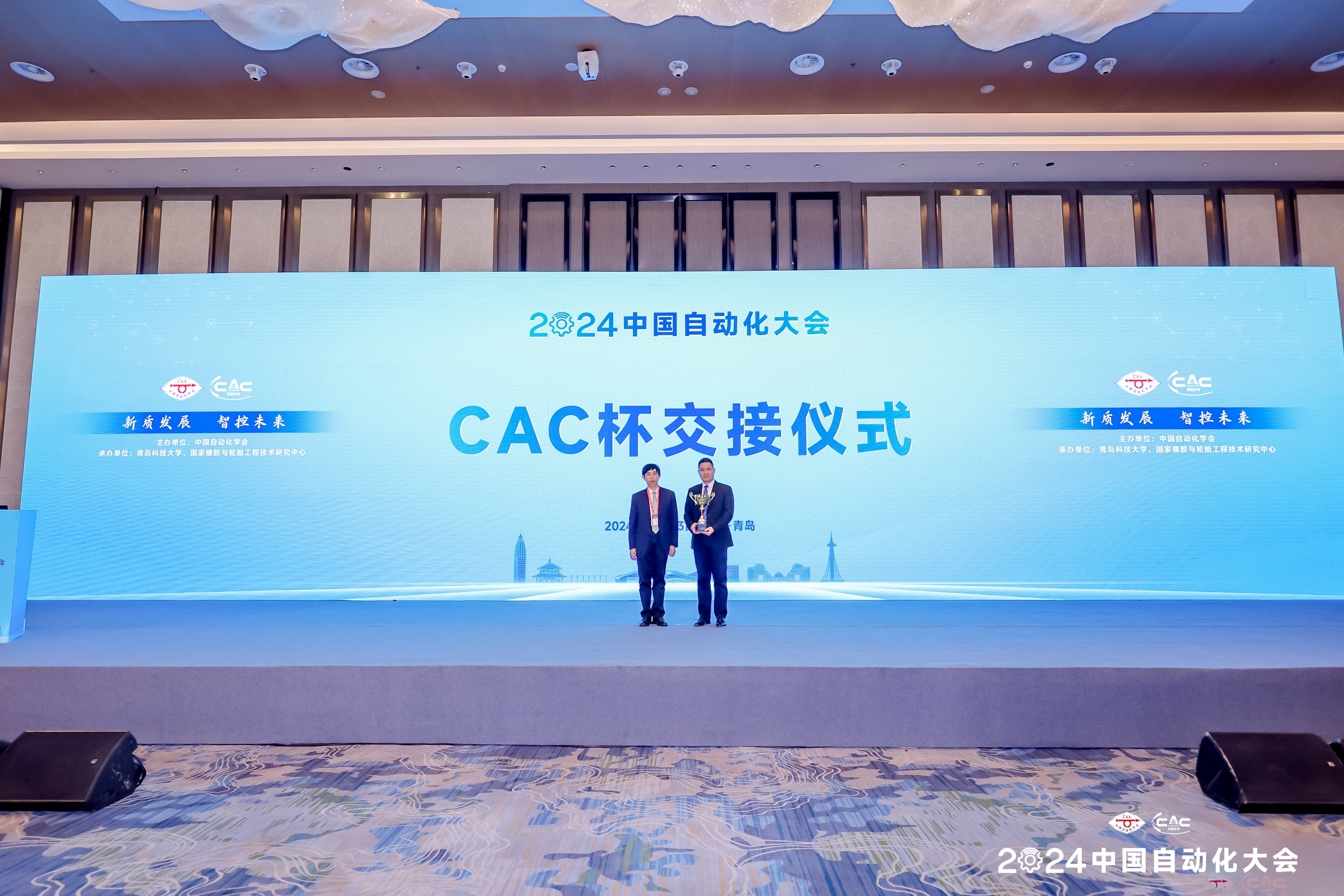 大会同期进行了“CAC杯”交接仪式,2024中国自动化大会组委会代表——青岛科技大学副校长李少远,将沉甸甸的“CAC杯”郑重转交给2025中国自动化大会承办单位代表——哈尔滨工程大学智能科学与工程学院院长蔡成涛。2025中国自动化大会将于2025年11月在哈尔滨召开,续写自动化大会新篇章。