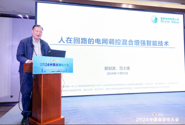 主论坛报告人、国家电网有限公司郭剑波院士进行“人在回路的电网调控混合增强智能技术”报告