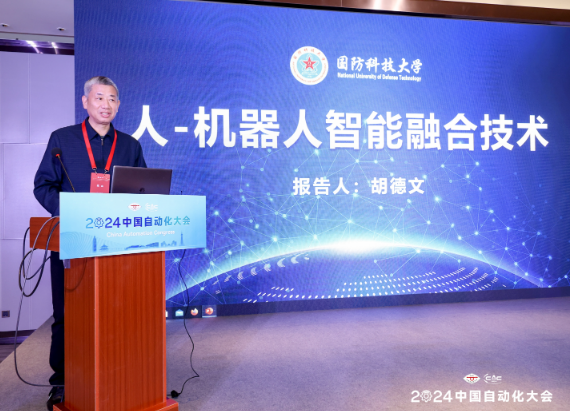 主论坛报告人、国防科技大学胡德文教授进行“人与机器人智能融合技术”报告