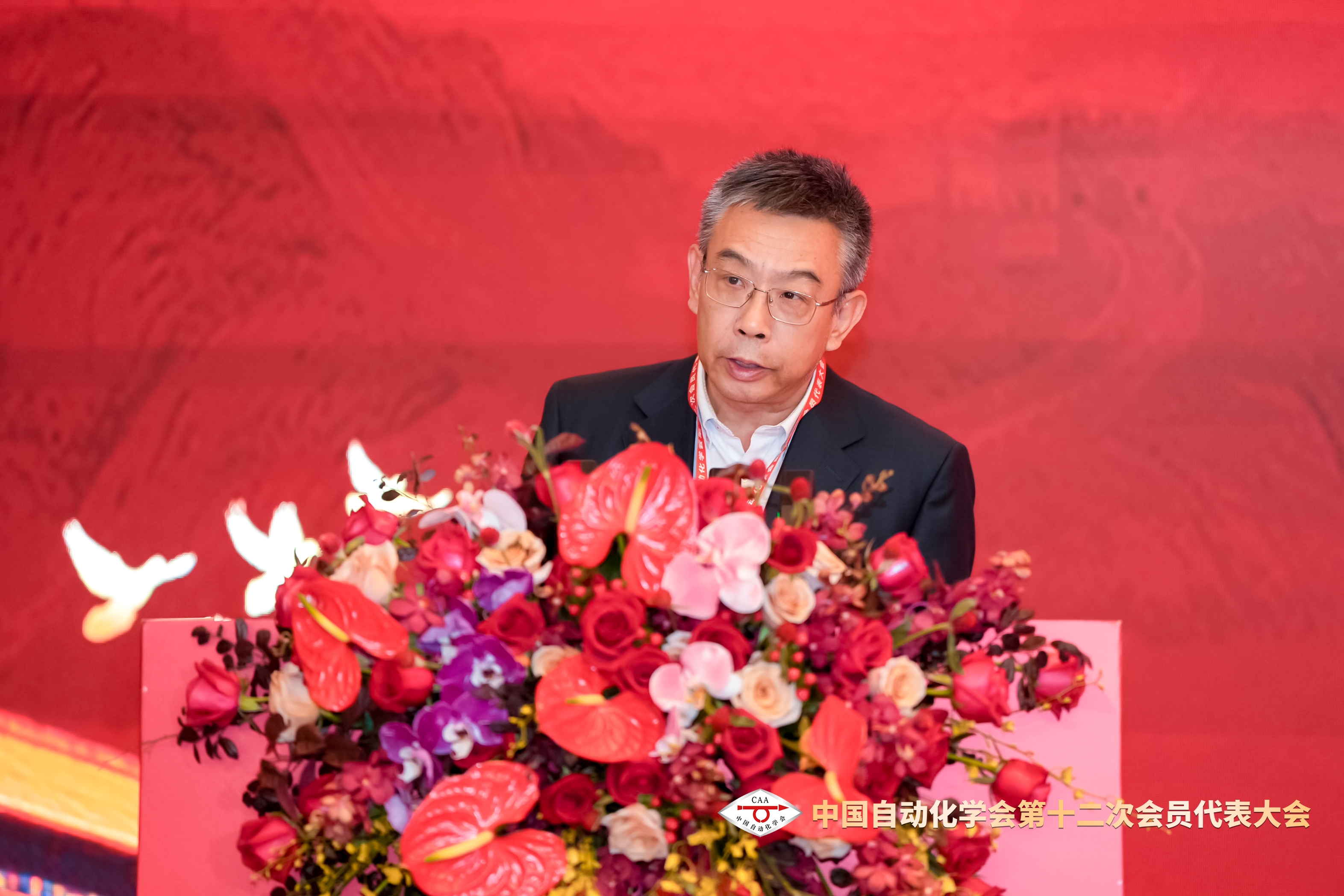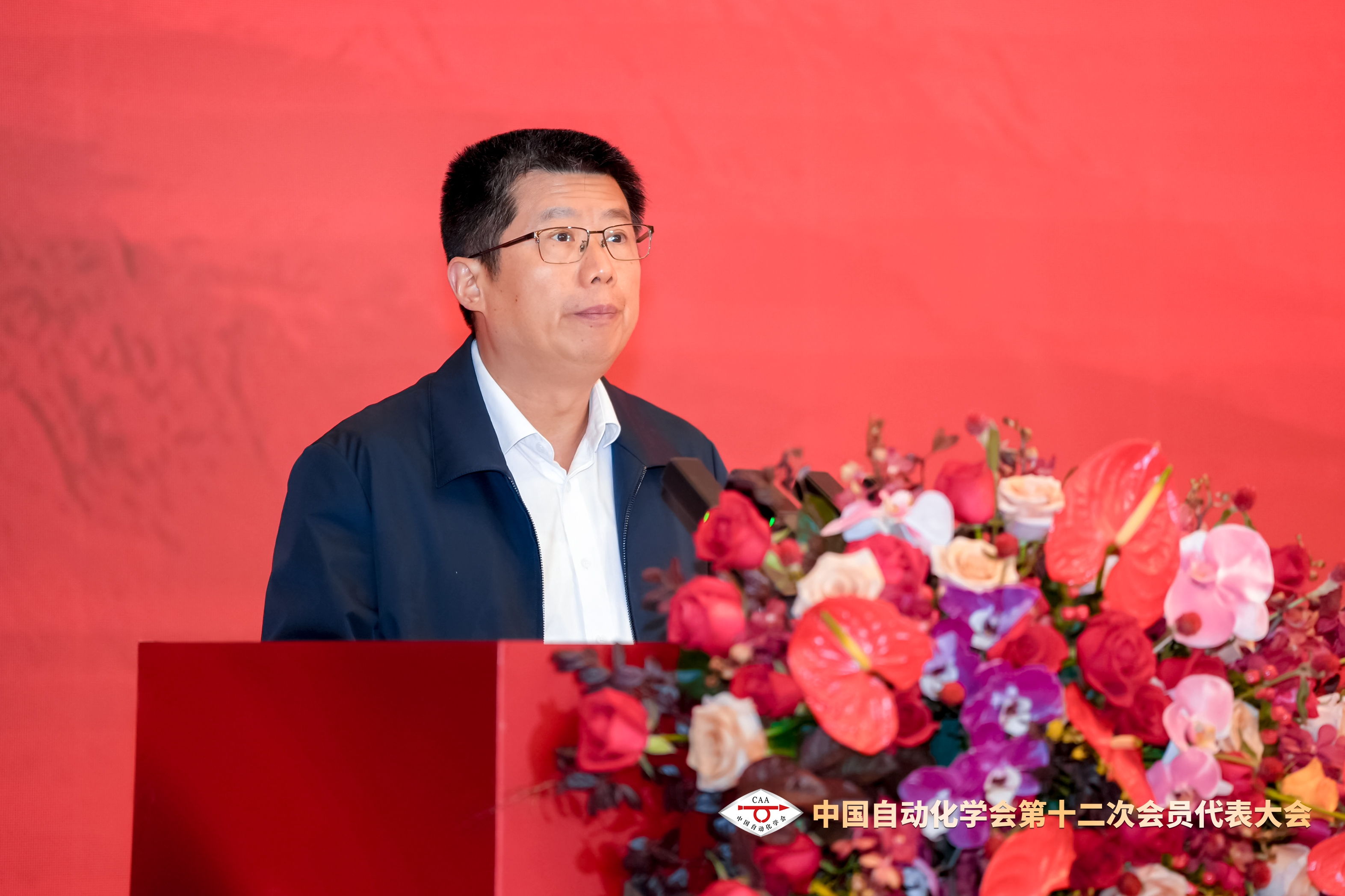 中国科学院自动化研究所党委书记、副所长袁东在致辞中对学会在十一届理事会领导下取得的成绩给予了高度肯定。他表示,中国科学院自动化研究所作为支撑单位,会一如既往地支持学会各项工作。希望学会在新一届领导班子的带领下,能够聚焦国家战略需求,紧扣科技前沿,团结带领广大科技工作者,开拓创新,锐意进取,为中国自动化科技和产业的进步与发展作出新的更大贡献。