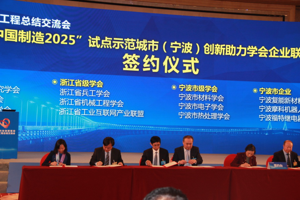 会上,学会副理事长李少远教授代表学会参加了中国制造2025试点示范城市(宁波)创新助力学会企业联合体、机器人产业(芜湖)创新助力学会企业联合体的签约仪式。