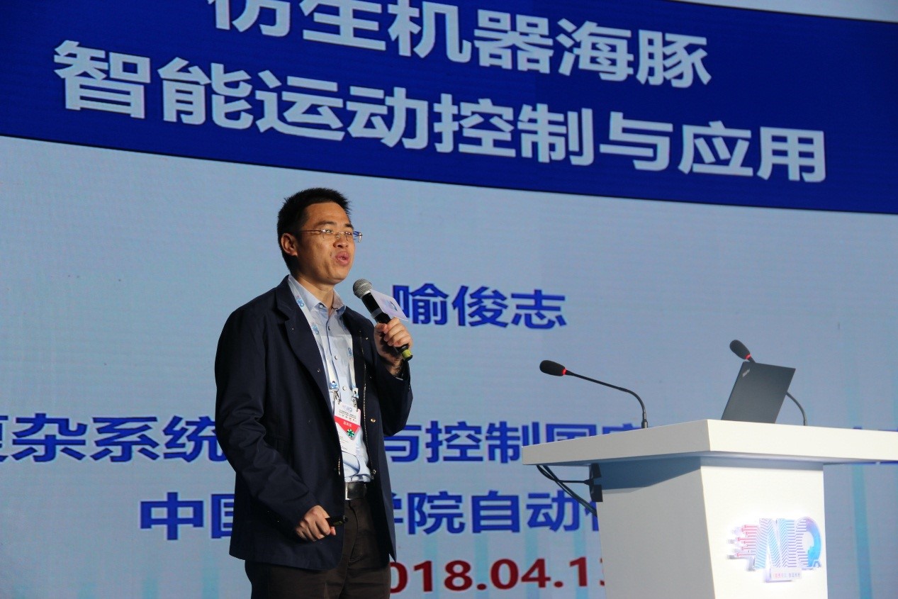 中科院自动化所喻俊志研究员在题为《仿生机器海豚——智能运动控制与应用》的报告中指出,在水下仿生领域,海洋动物的高效率、高速度、高机动性、低噪声等优点,使其成为科学家们研制新型高速、高机动、低噪声的仿生水下机器人模仿的对象。以仿生机器海豚为例,喻老师着重介绍其运动控制包括定深、定向、平面路径跟踪控制等方面的研究进展,以及在野外水质监测中的应用,并对未来研究方向和工作重点进行分析和展望。